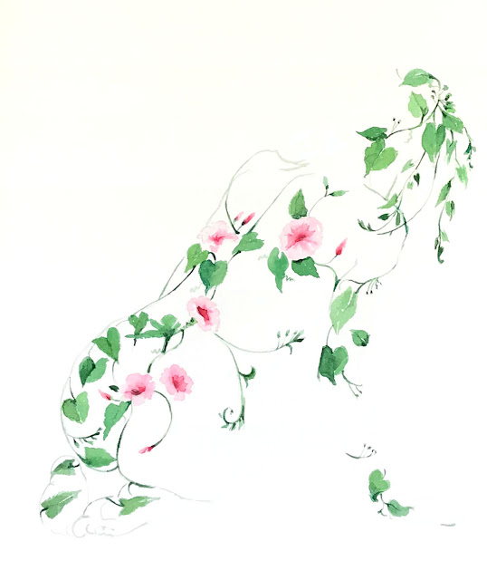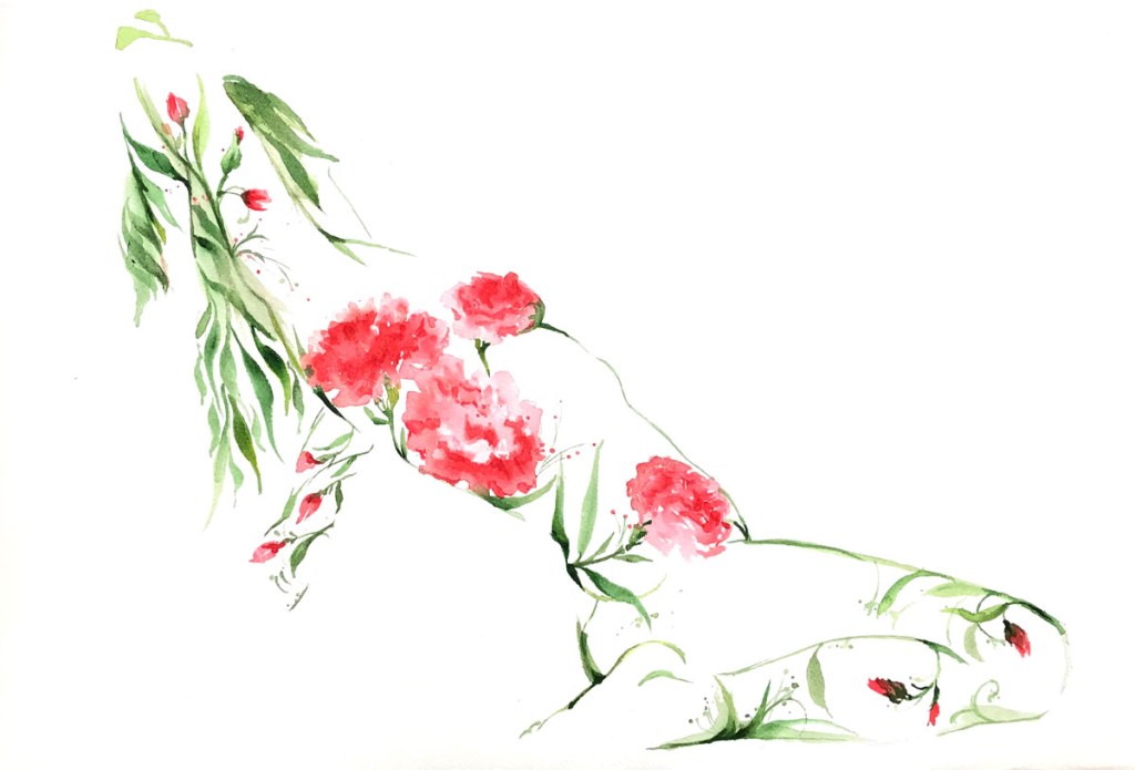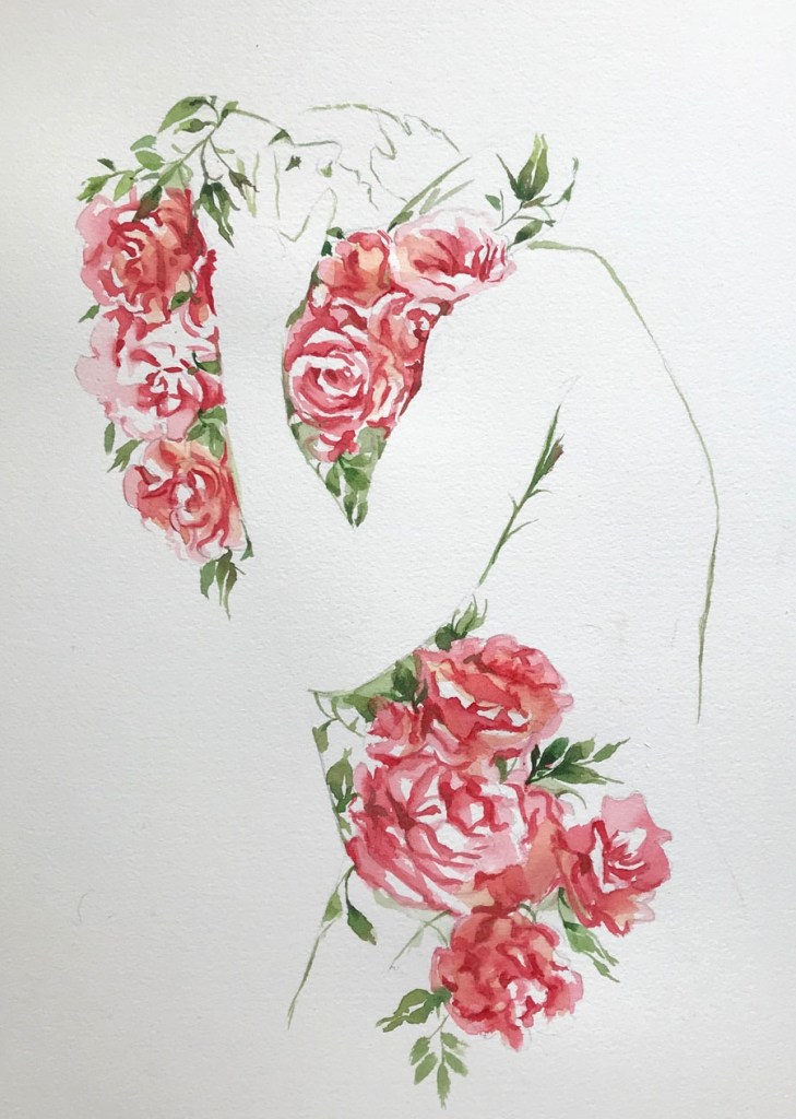 Jag hade en period när jag gjorde akvareller med blommor som formade människokroppar. Det är ett återkommande tema i mitt liv: att låta objekt forma kroppar. Jag minns att det var så roligt.