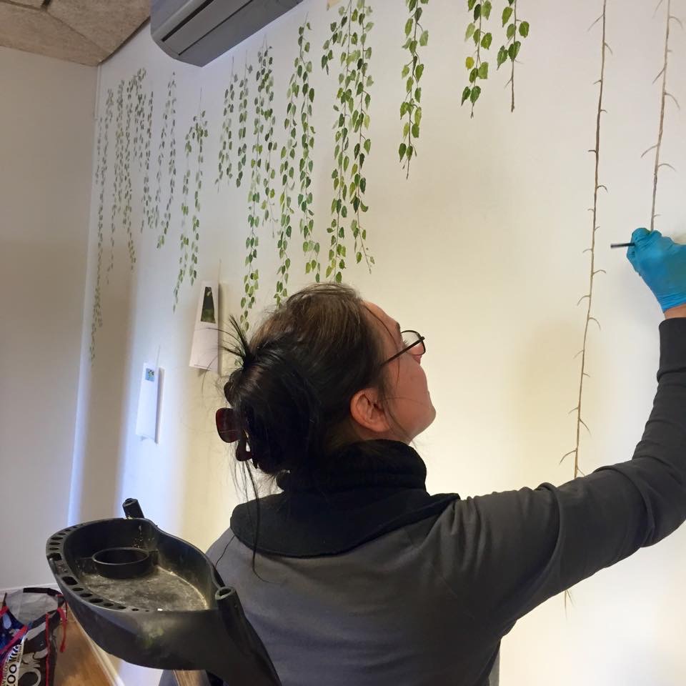 Sen har jag förstås hjälp till med inredningen, främst med måleri. Jag har målat väggar, även ”plankmålat”. Jag har målat otaliga möbler, dörrar, tak och golv. Det finns inget rum som jag inte har gjort något i vid något tillfälle. Jag har också målat ett otal ”vanliga” tavlor men även jobbat i både restaurangen och receptionen, bakat pizza och faktiskt städat lite. Och jag har krattat löv och slipat utemöbler, klättrat i träd för att hänga upp lampor och så vidare.