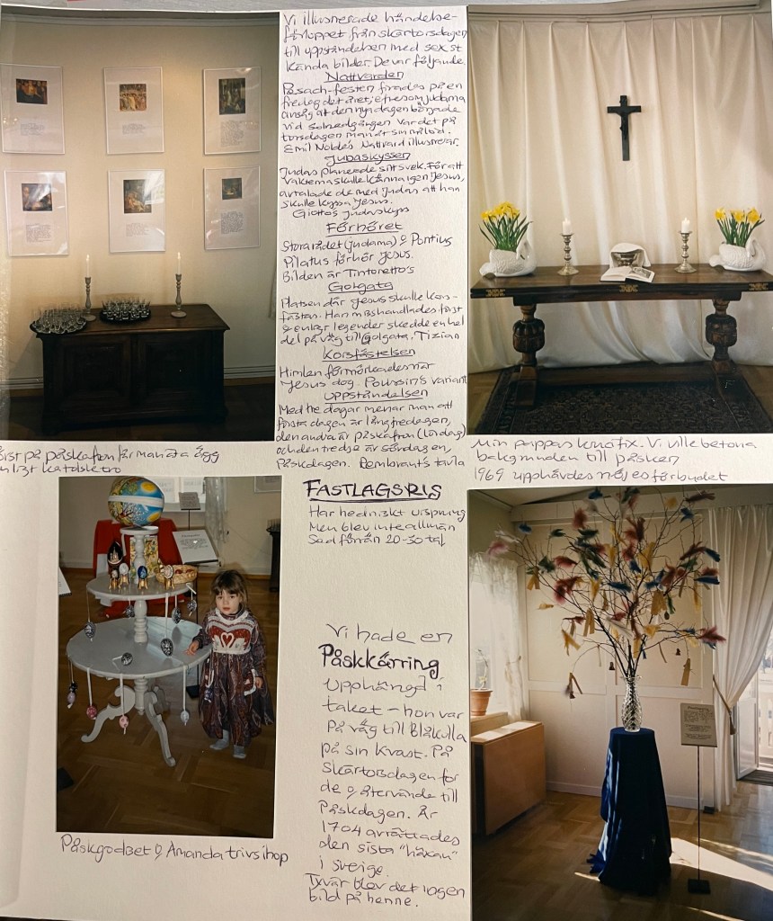 Här har jag fått göra så många spännande saker. Under många år gjorde vi utställningar till jul i den stora festlokalen, dit gästerna fick gå för att få glögg innan maten. Birgitta, Kristin och jag guidade gästerna. Jag kan inte ens minnas alla de olika teman vi hade; de var många år som vi ägnade oss åt detta.