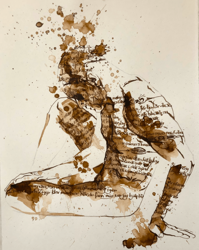 De två nedre utförde jag på olika papper vilket är synligt. Tuschet betedde sig väldigt olika. I de hade jag också släppt orden till förmån för bilder.