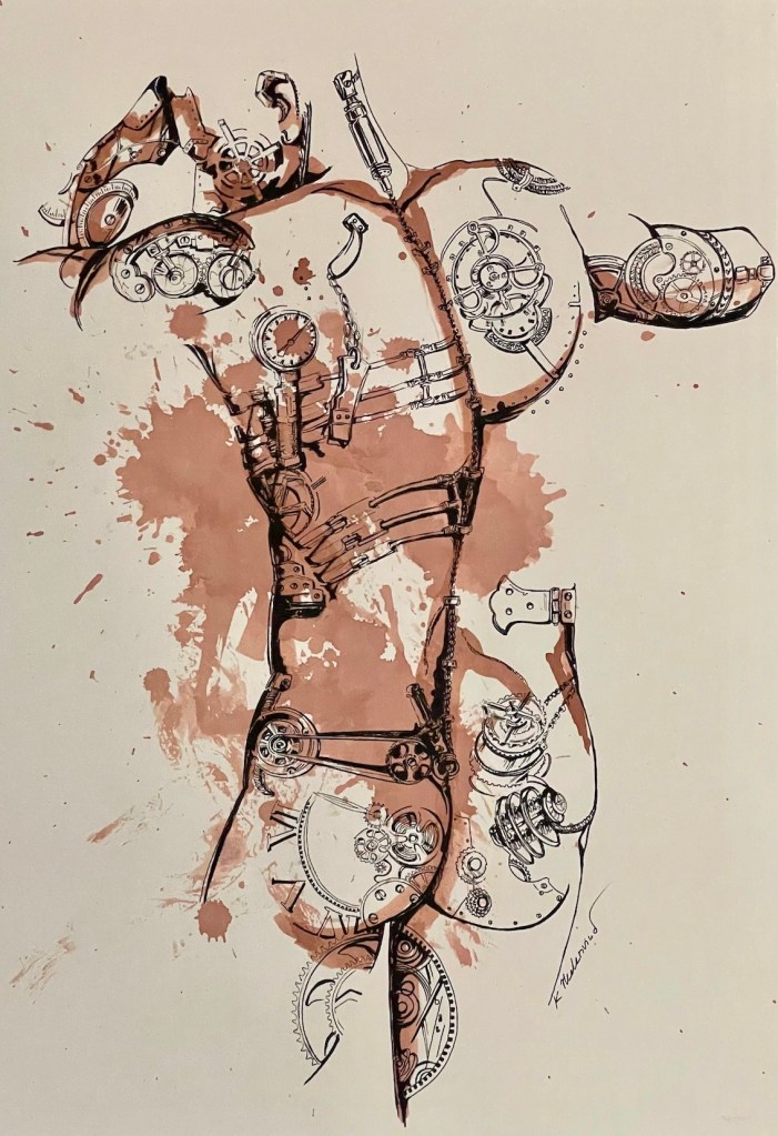 När jag har gjort en målning eller teckning i en viss stil fortsätter jag ofta med fler. Jag brukar hålla i den stilen under en period innan jag släpper jag den. I detta fall har processen sett lite annorlunda ut. Den första jag gjorde i denna serie, gjorde jag för ganska många år sedan.