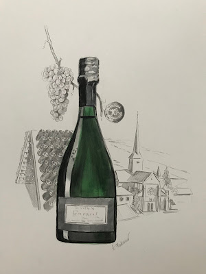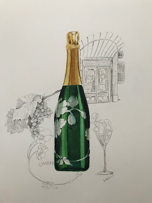 I målningarna ovan skrev jag inte ut etiketten på flaskan. Jag ville att man ska gissa vilket champagnehus det är. Jag delade dessa på Insta och en person såg dem och ville ha något liknande. Det blev fyra stycken, delvis andra hus. Men ingen etikett eller namn, kan du gissa vilka hus det är?
