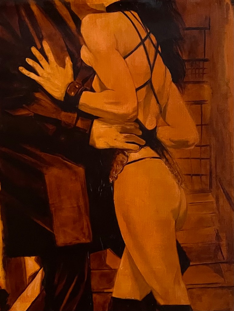 När ”min Amanda” var liten brukade jag teckna olika figurer åt henne, ofta prinsessor eller superhjältar (det blev många Storm och Rogue). Jag började med huvudet men innan jag hunnit göra munnen frågade Amanda mig ”men klackskorna då?”. Jag försökte förklara att jag måste göra både hals, bröst och ben innan jag kommer ner till skorna. Idag skrattar vi åt det, och hon förstår mycket väl att måla är en process. Dels tar det fysiskt en viss tid att utföra en tavla, även om man räknar med att allt fungerar som det ska och blir bra omedelbart. Vilket det förstås inte blir. Det är ofta ett sökande, ett provande. Och en massa misslyckanden. Jag förundras ofta själv över hur jag inte kunde förutse att ett val skulle misslyckas. Det är därför jag helst målar själv, och håller min process nästan lite hemlig. Så att jag kan söka linjer, färger och uttryck utan krav att jag omedelbart måste hitta rätt. Sen kan man förstås planera sin målning bättre än vad jag gör. Jag börjar nästan alltid med en lös plan, ibland nästan obefintlig plan, och löser problemen på vägen.