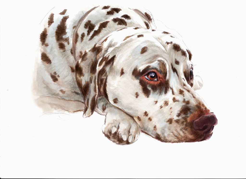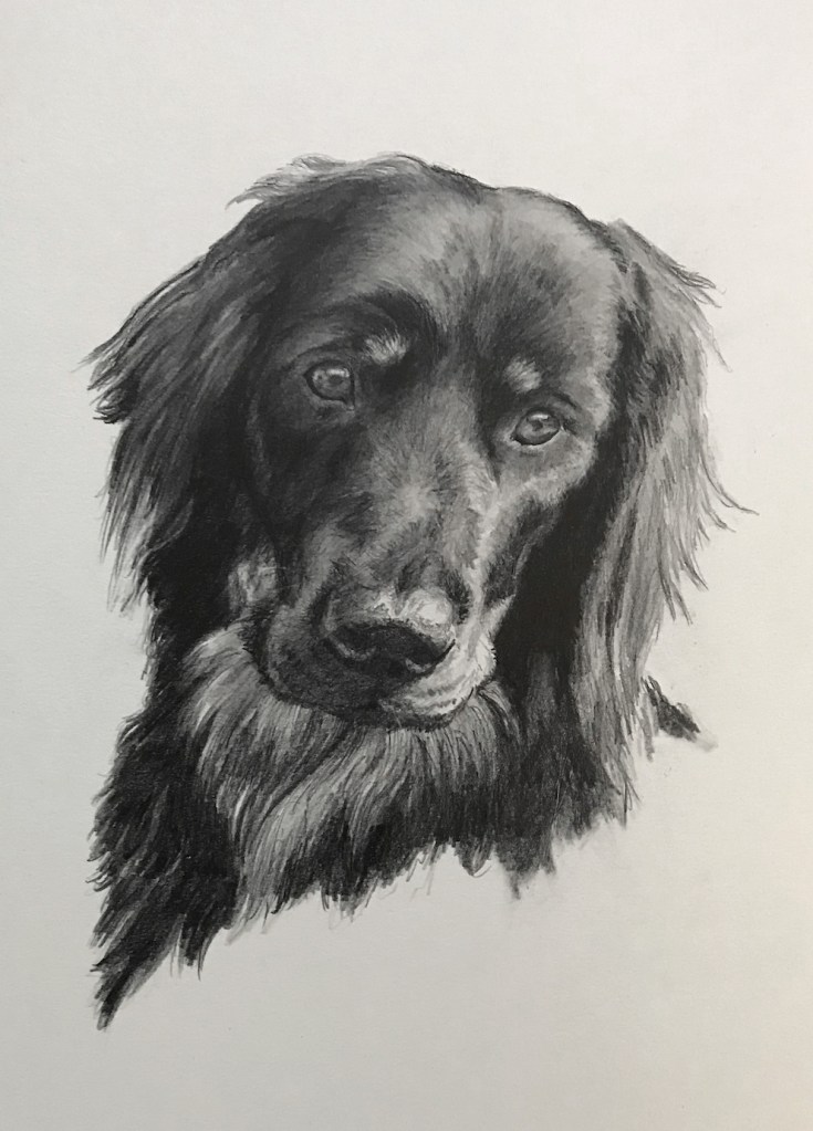 Jag har ofta fått i uppdrag att teckna eller måla hundar. Nästan lika ofta som jag tecknat barnporträtt. Hundägare älskar ofta sina hundar som en familjemedlem. Och jag förstår så väl de banden man bygger.