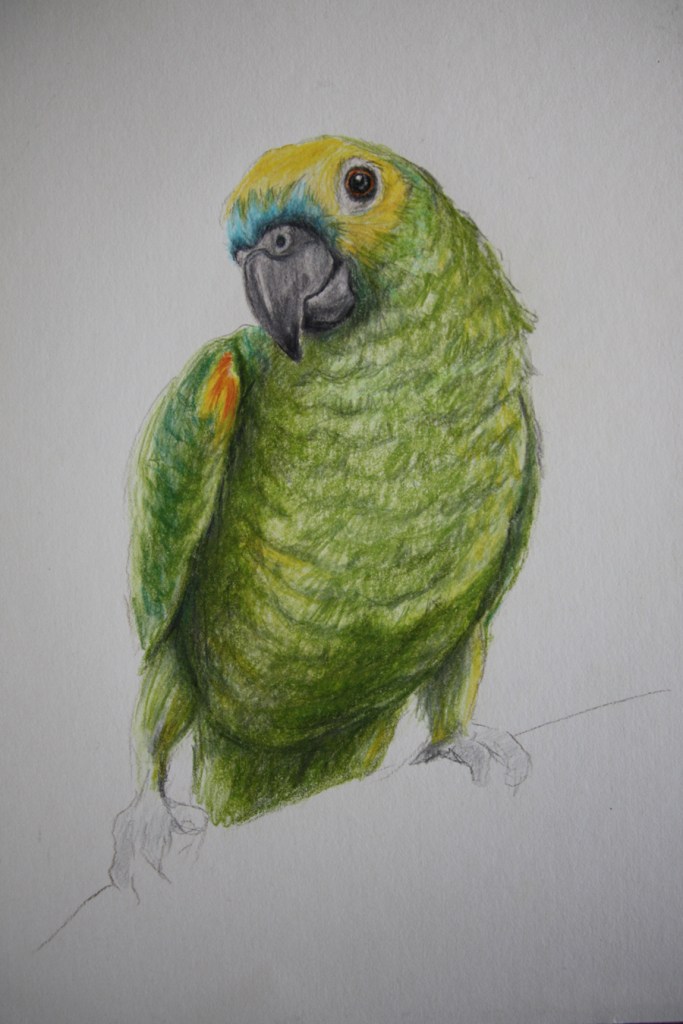 Några vänner hade en papegoja som jag tog hand om ibland. Jag tecknade förstås av den och vet att det ska finnas fler teckningar än dessa två men kan inte hitta dem.
