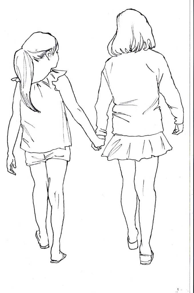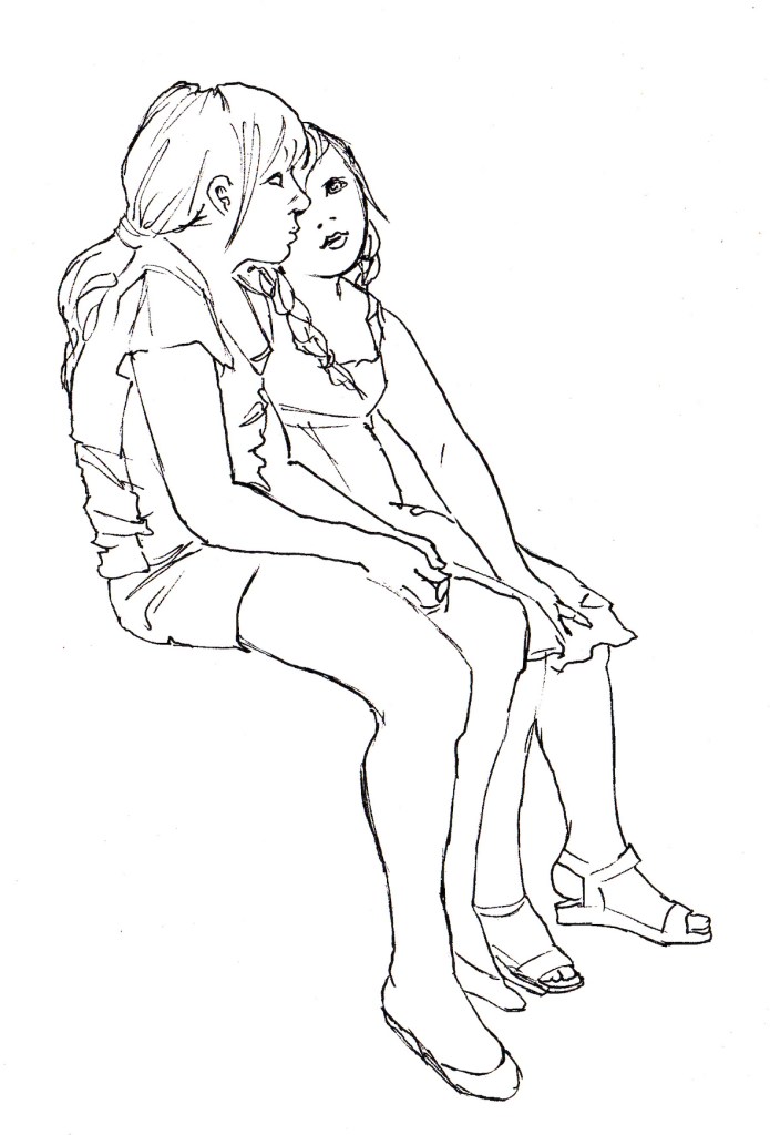 En av de mer utmanande saker man kan teckna är flera personer i en och samma bild. Det är alltid någons ansikte eller någons hand eller något annat man blir missnöjd med. Men det kan också vara svårt att få till samspelet mellan personerna.