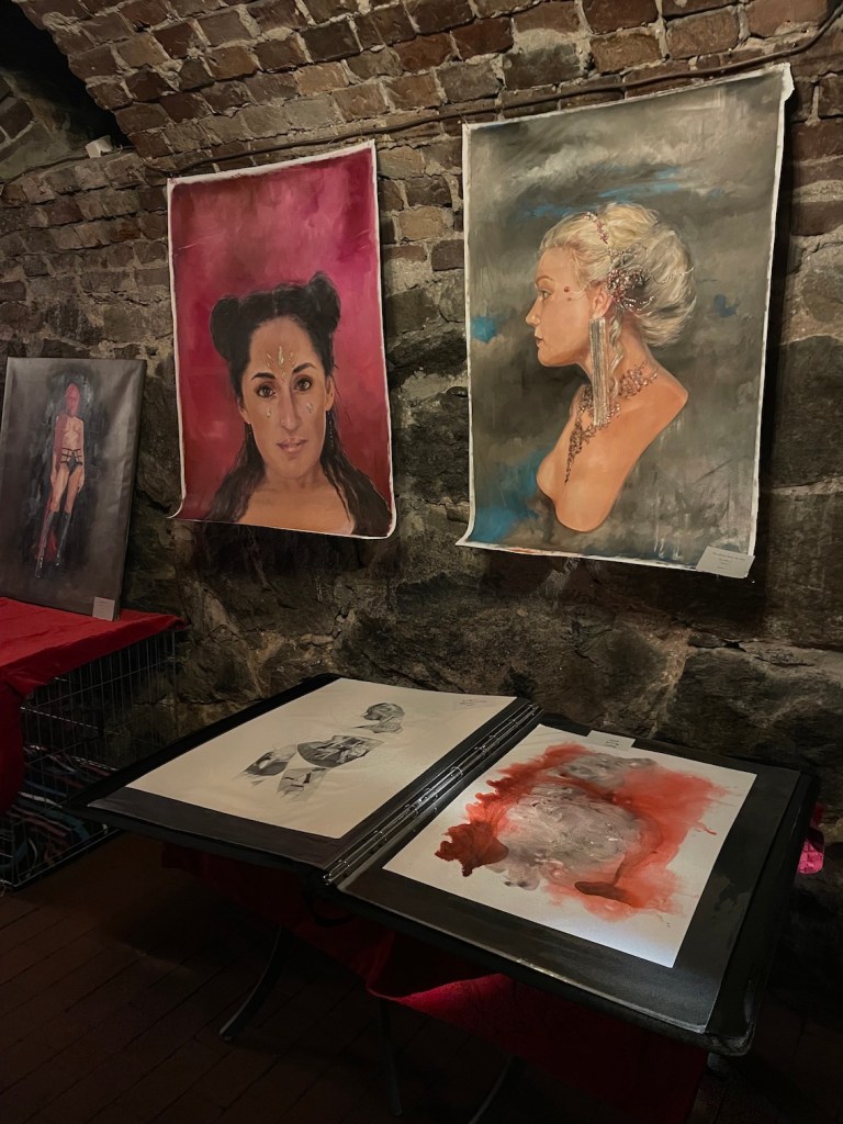 Jag känner en klubbägare som gav mig ett otroligt generöst erbjudande att ställa ut min konst i hans superfina klubb (Sidenkällaren) på söder. Jag känner också två festarrangörer som tidigare brukade anordna fester där men för den gamla ägaren. Jag kände att jag inte kunde gå förbi dem så vi anordnade en vernissage/fest tillsammans igår.