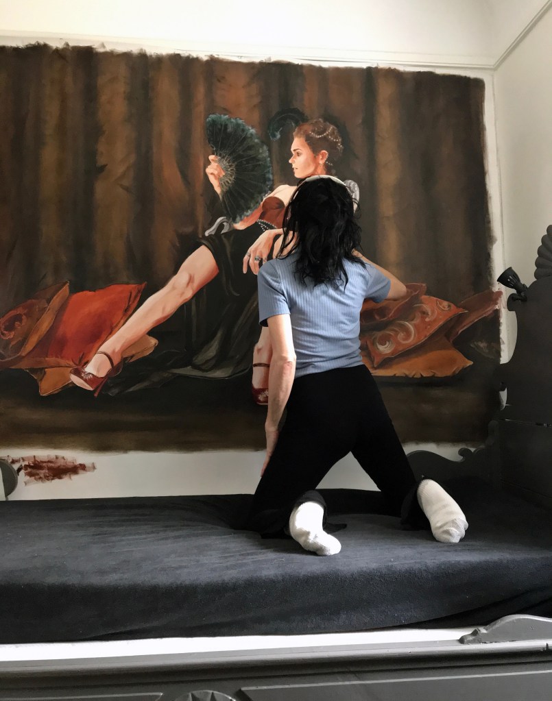 Sedan jag flyttade till min pyttelilla lägenhet så har jag spänt upp målningar över sängen och målat stående på sängen ett otal gånger.