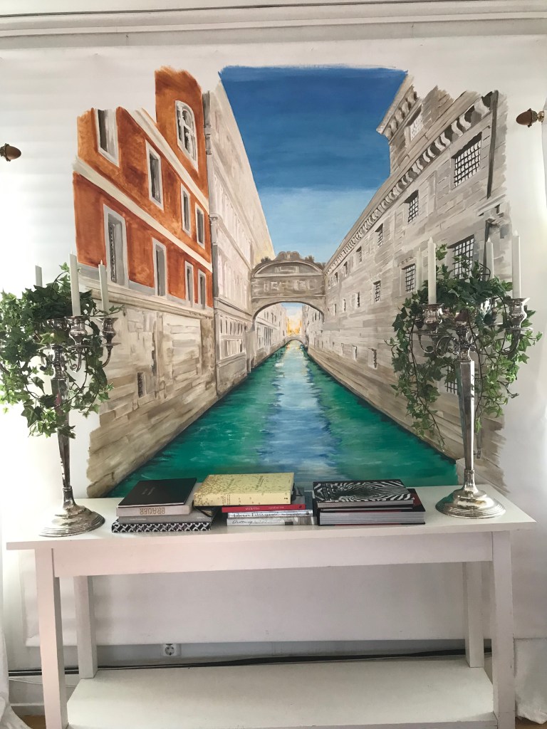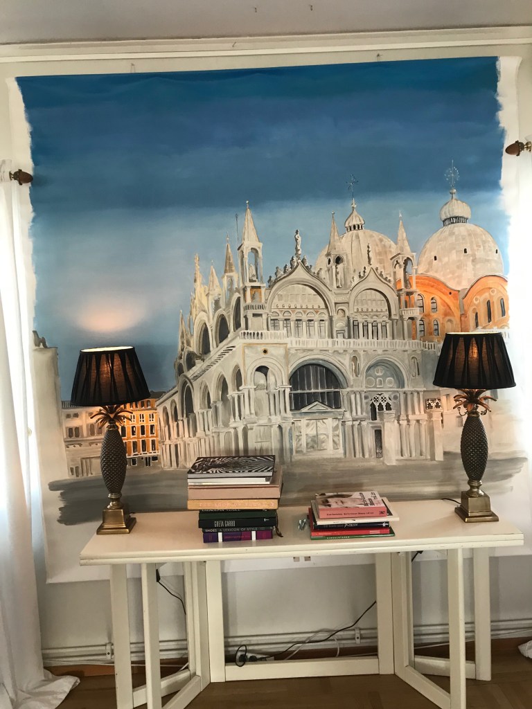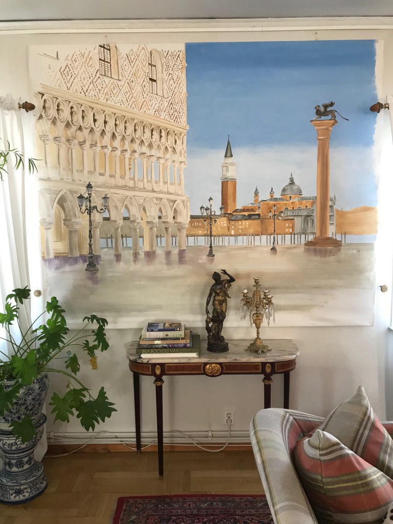 Det har varit ganska många galna project under årens lopp men bland de jag minns tydligast var nog för några år sedan när jag gjorde sex stycken stora målningar (210×250 cm) på lika många veckor. De skulle användas till en fest med tema Venedig och motiven var olika delar av staden. Eftersom jag inte är en urban målare var motiven nästan överväldigande komplexa för mig.