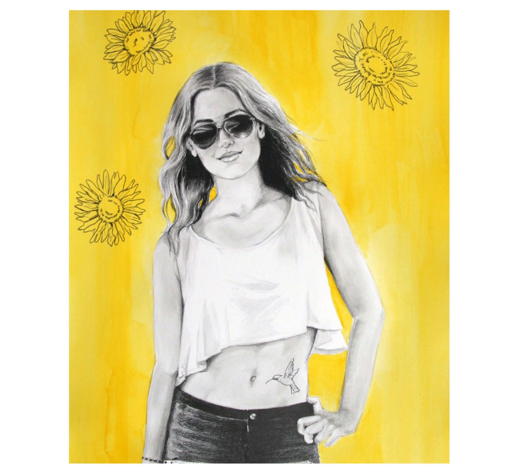 Denna teckning gjorde jag för några år sedan som en utmaning. Jag och en konstnärskollega ”utmana” varandra att utföra en teckning eller målning där den ena valde två objekt (det blev solros och kolibri) och den andra valde en färg (det blev gult).