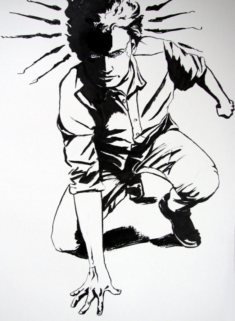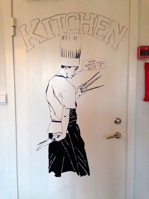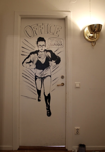 Jag gjorde en serie teckningar som sedan blev målningar på flertal dörrar på Bomans hotell som var inspirerade av min kärlek till comics.