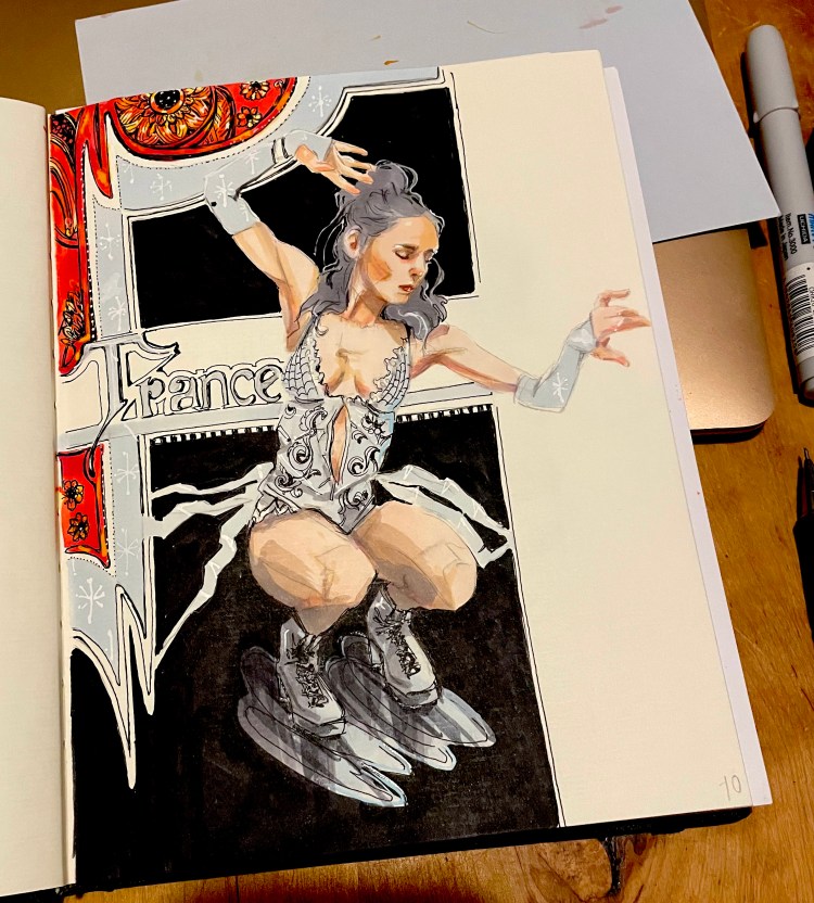 Här följer några sidor ur min skissbok som jag kallar ”my world is colorful”.