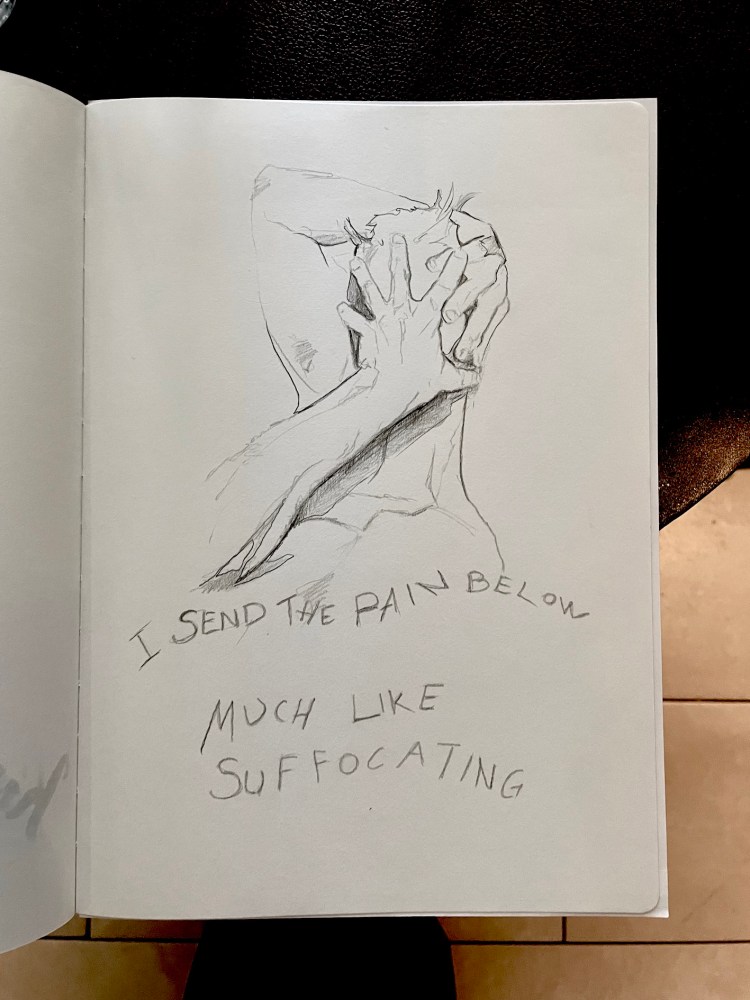 Jag påbörjade och slutförde en skissbok i somras där jag utförde en teckning efter en låt. Jag kallade skissboken för Music Makes me Lose Control.