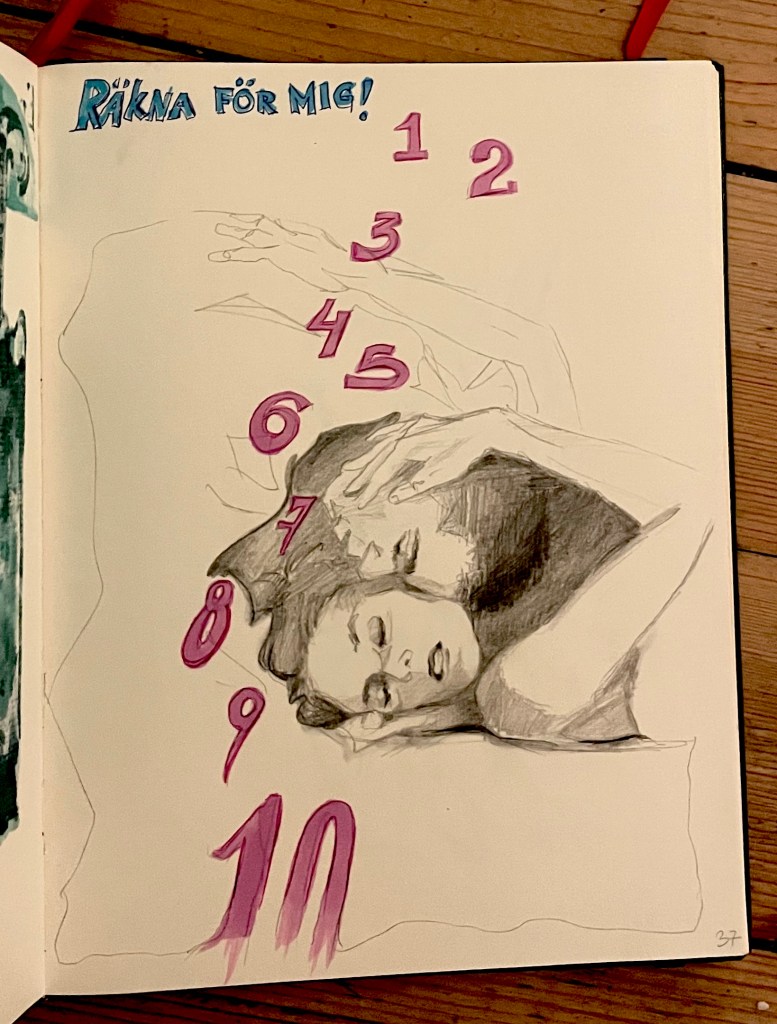 Jag har tecknat klart halva boken och börjar undra om jag kanske ska tänka om. Jag kämpar så mot pappret som inte är gjort att teckna på med någon typ av färgpenna. Att ge upp en skissbok innan man tecknat alla sidor känns fel och tar emot.