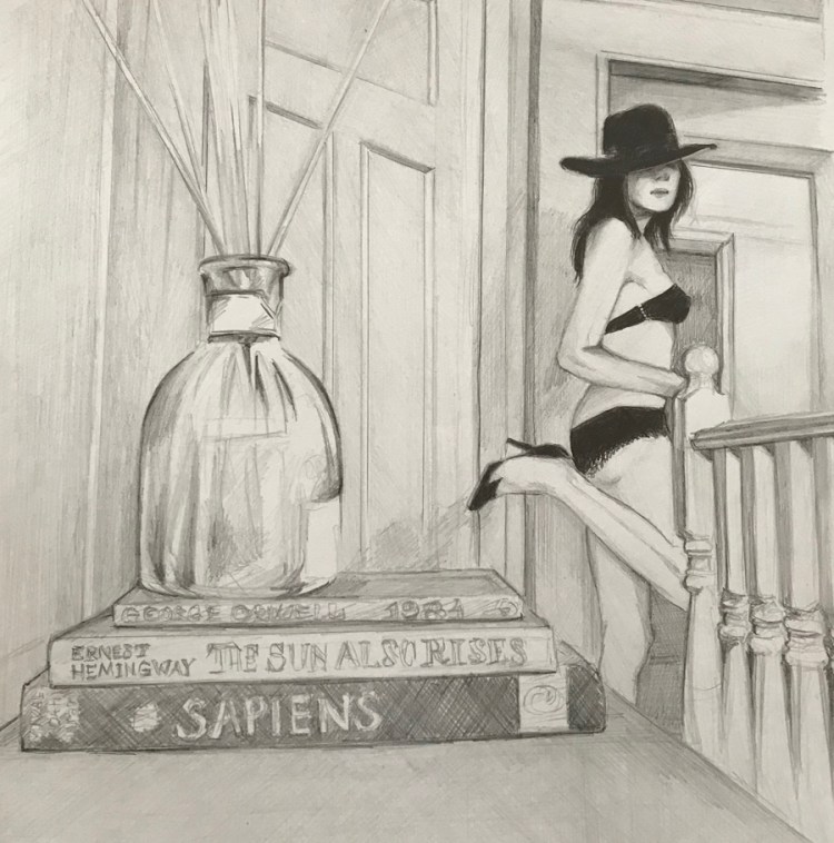 Jag hade haft en lång period där jag fokuserade på det huvudsakliga i bilden, vilket för mig är människan, och därmed låtit bakgrunden vara helt eller delvis obearbetad. Jag gillade den stilen särskilt när det gällde mina mer realistiska bilder, mycket för att det skapar ett fokus på vad som är det viktiga i bilden. Men en morgon för några år sedan, i min fd svägerskas badrum såg jag mig själv i speglarna och såg en bild där huvudpersonen kanske egentligen var rummet. Det ögonblicket blev en teckning. Som kom att bli en serie teckningar med tiden.