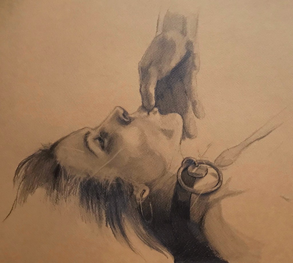 Mina teckningar uttrycker mina fantasier men ska inte tolkas som att de bjuder in till något. Det har krävts mod att visa mina erotiska teckningar, men jag vill vara en motpol mot den fortfarande vanligt förekommande bilden av att sexualitet är för män. Dessa bilder handlar om de kinks man kan ha, som ju kan vara en del av erotik. Och ibland kan de också vara nästan symboliska. Men varför man har kinks är en fråga jag ställt mig många gånger. Och ja, jag har många i min fantasi.