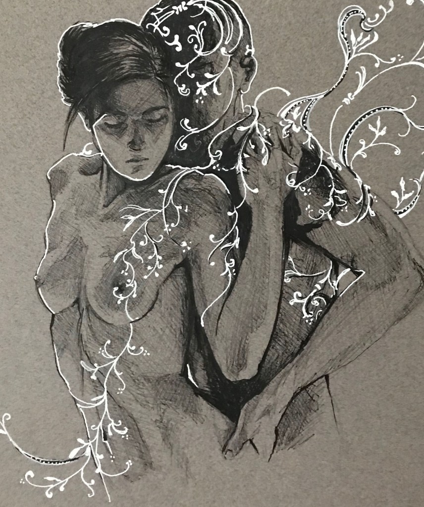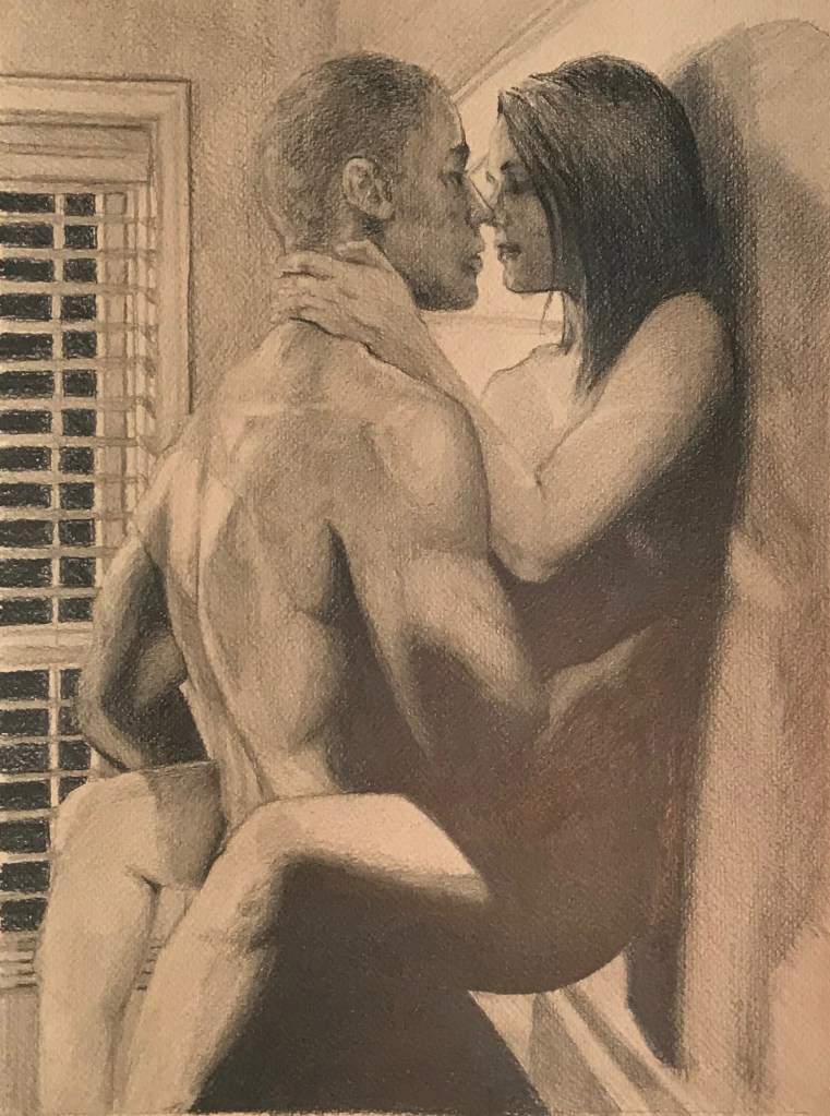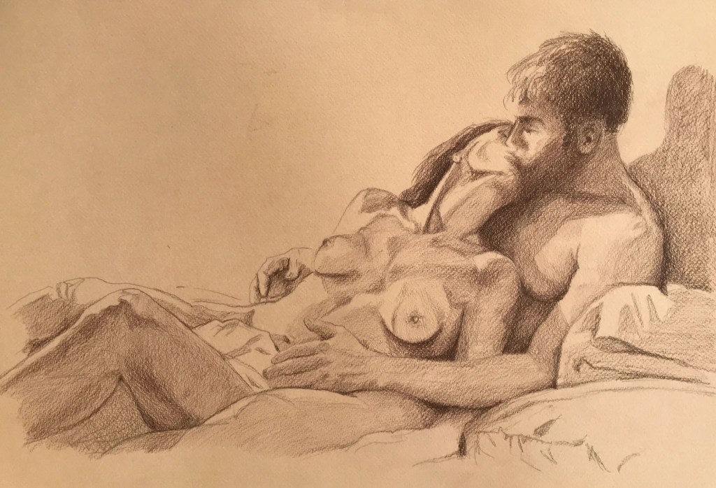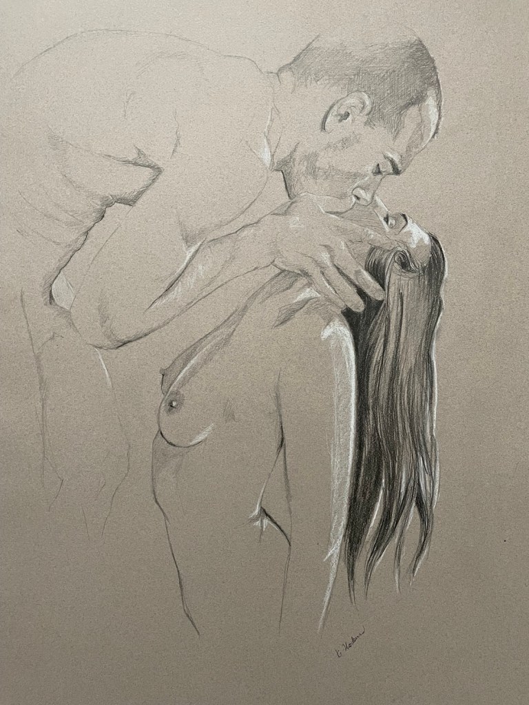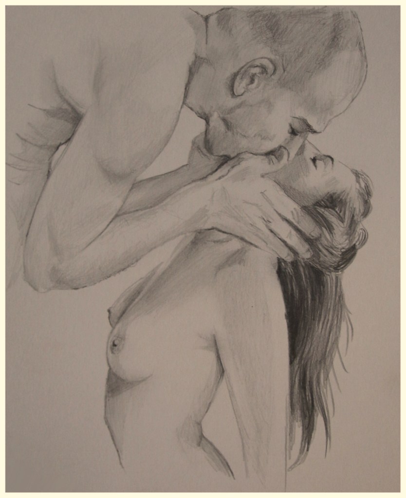 De har förvisso en erotisk ton men jag känner att de ändå inte hör ihop med de andra teckningarna. För de är mer rena i sin erotik medan dessa är mer än erotik, de är passion.