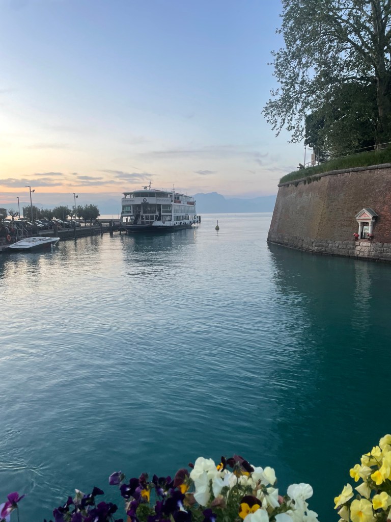 På kvällen åkte vi tillbaka till Peschiera del Garda. Vi åt middag på en fiskrestaurang som låg i en gammal båt i hamnen. Där drack vi en Lugana samt en Franciacorta. Kvällen var fylld av skratt och allvar. De andra fortsatte till en bar men jag längtade efter en dusch och till sängen. Och en liten stund för reflektion över dagen.