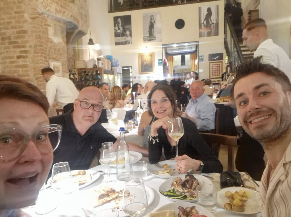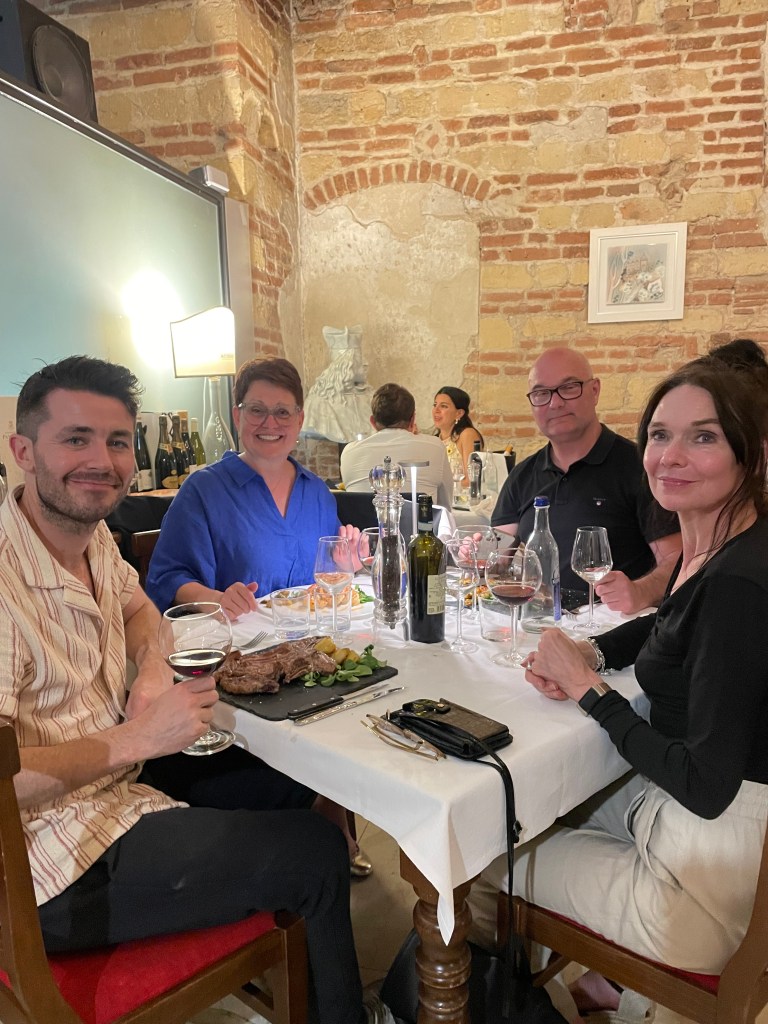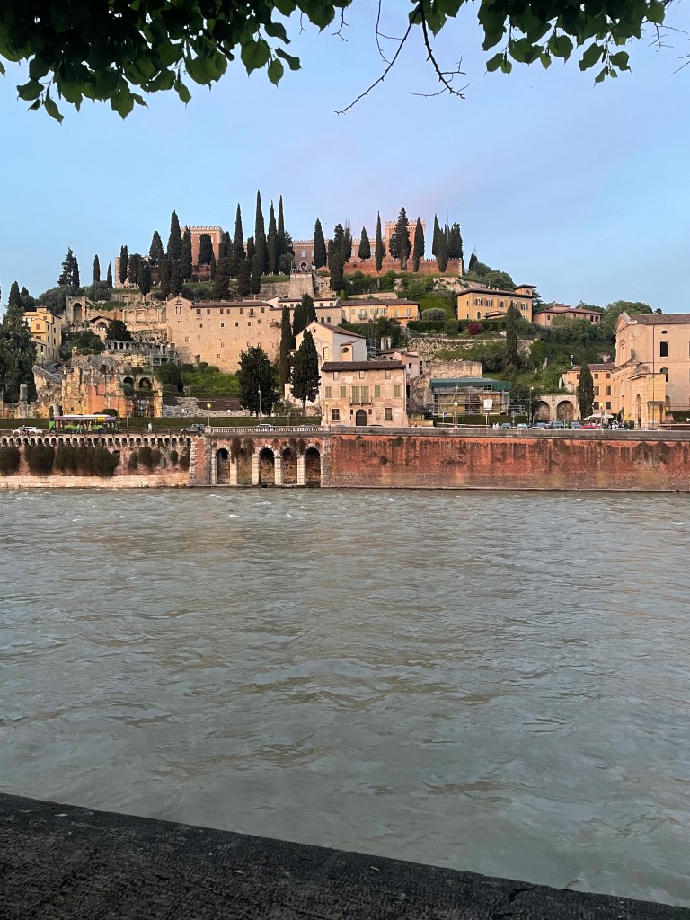 Efter att provat åtta viner och checkat in på vårt hotell i Peschiera del Garda, en liten stad vid Gardasjön nära gränsen till Lombardiet, tog vi oss till en restaurang som inretts i en gammal kyrka. Där drack vi en Spumante Soave och senare en Rosso di Montalcino.