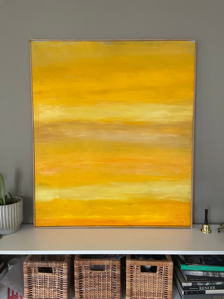 Det är inte ovanligt att jag triggas till att gå in i en målarperiod av någon speciell anledning. I slutet av sommaren bad min syster mig att måla en tavla som hon hade i huvudet. Den skulle vara abstrakt och gå helt i gult.