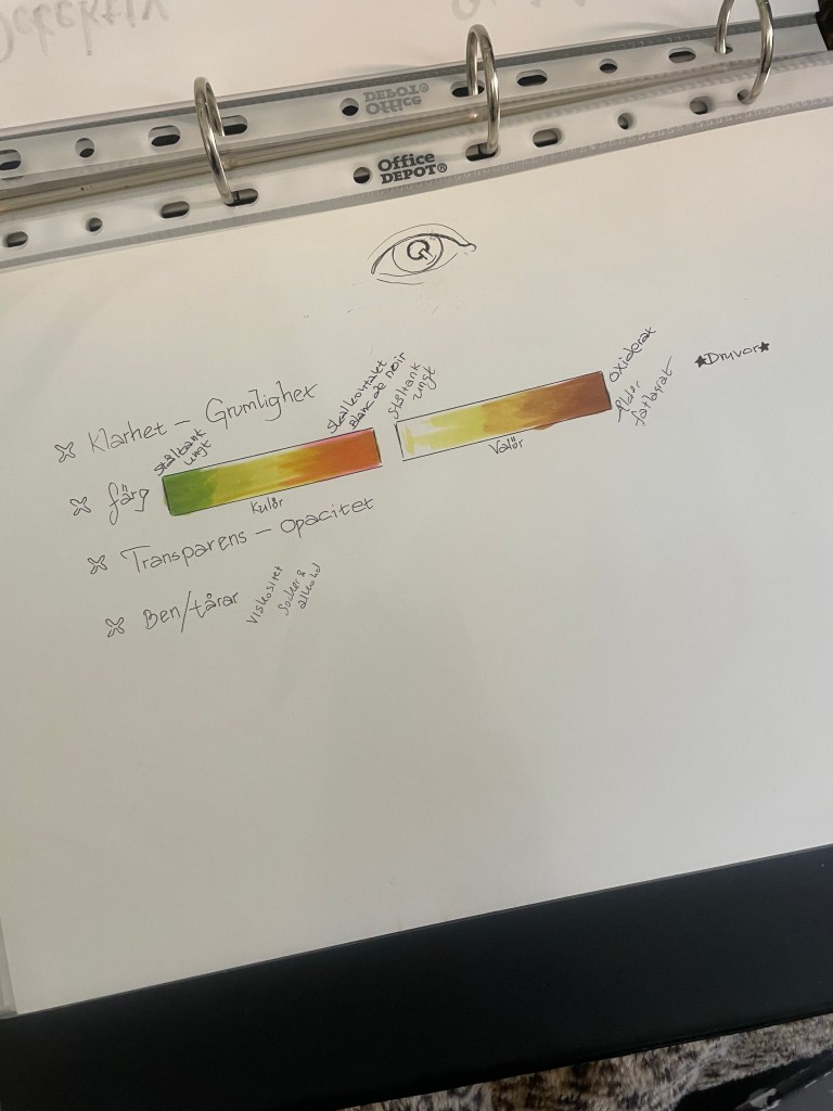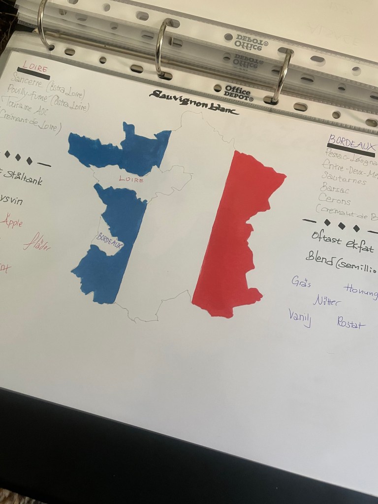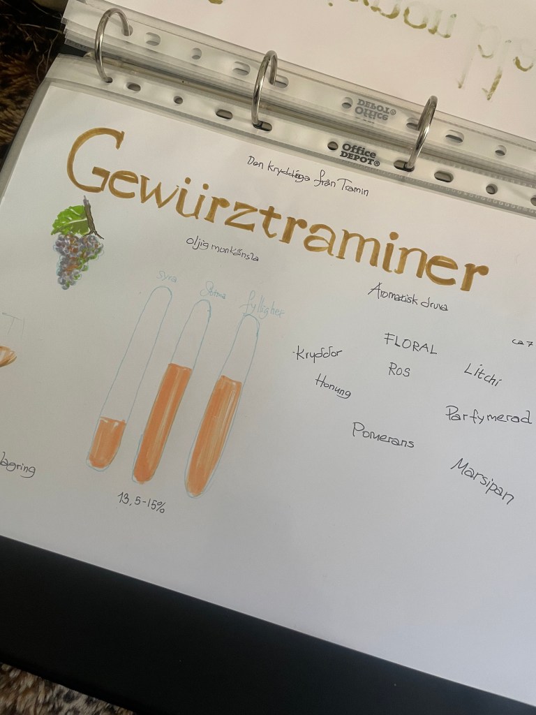 Jag höll i en vinprovning innan middagen. Vi fokuserade på hur man provar vin och ställde två väldigt olika druvor mot varandra: sauvignon blanc och Gewurtztraminer. Jag hade förstås gjort en presentation och tagit med glas till alla.