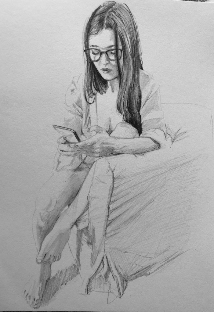 Hon bodde hos mig några somrar vilket resulterade i en mängd målningar och teckningar på henne, men förstås har jag tecknat och målat henne sedan hon var barn och kommer så att fortsätta så länge jag kan hålla i en penna.