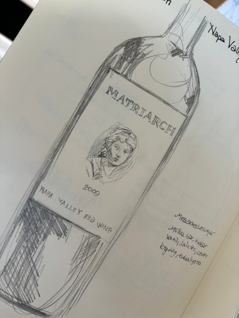 Den påbörjades hösten 2022, vilket var samtidigt som jag började jobba på vinfolket. Och det märks, för boken är full av viner från baren. Vi måste ju förstås prova allt vin vi ska sälja så att vi kan beskriva vinerna (både för gästen och när vi skapar veckans vinmeny).