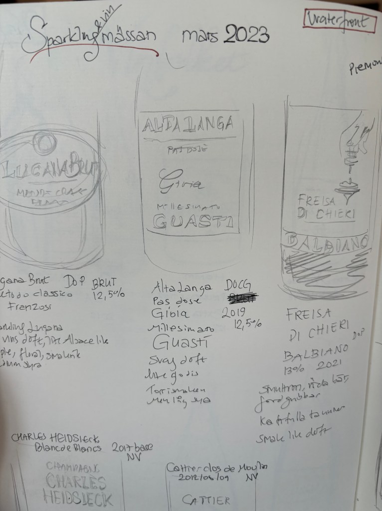Jag hade en plan hur jag skulle lägga upp min inlärning innan jag började på vinfolket men jag fick lov att bryta den eftersom jag måste fokusera på det vi säljer. Det syns i min vinbok, för vi har mest italienska viner och de har också dominerat i min bok. Men det har också druckits mycket champagne och nu på sista tiden har jag ökat provningar av vitt vin (som jag tycker att jag ligger efter med).