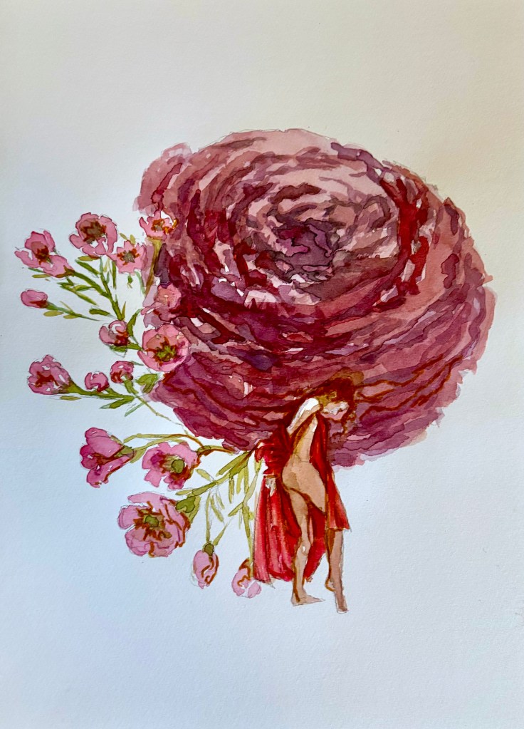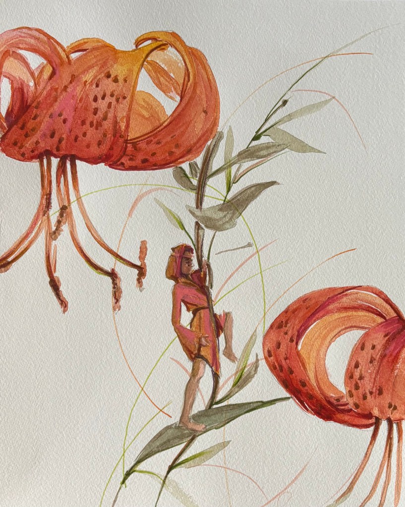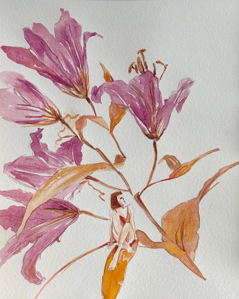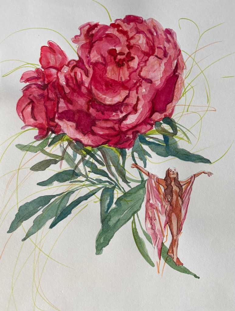 Jag såg framför mig en hel vägg med enorma blommor och en liten älva eller figur. Föreställ dig att en av målningar är en hel vägg! Den skalan!