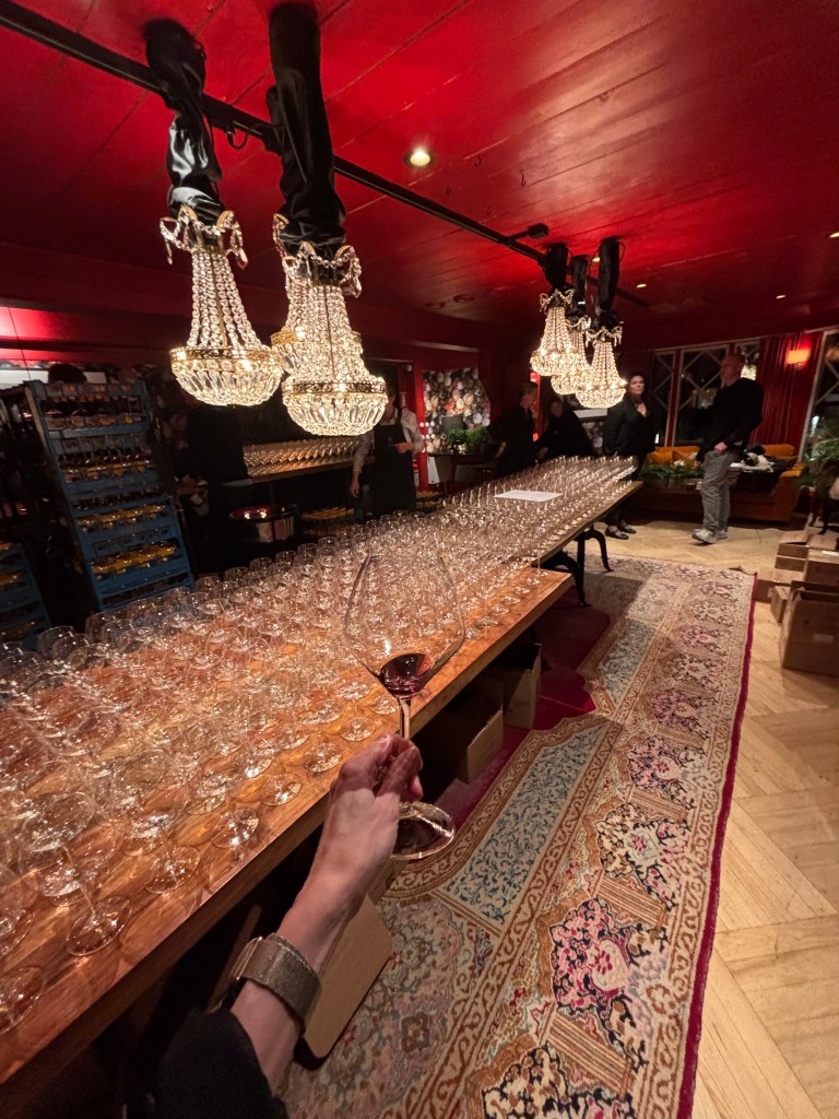 En sådan här kväll var det full personalstyrka (jag gissar tjugo personer) fördelade på olika roller. Det är en speciell stämning när så många deltar och det finns en liten nerv närvarande som om vi alla ska upp på scen. kontrasten till mitt vanliga jobb på min lilla vinbar är stor. Där jobbar jag oftast själv med en kock eller möjligen någon som hjälper till några timmar.