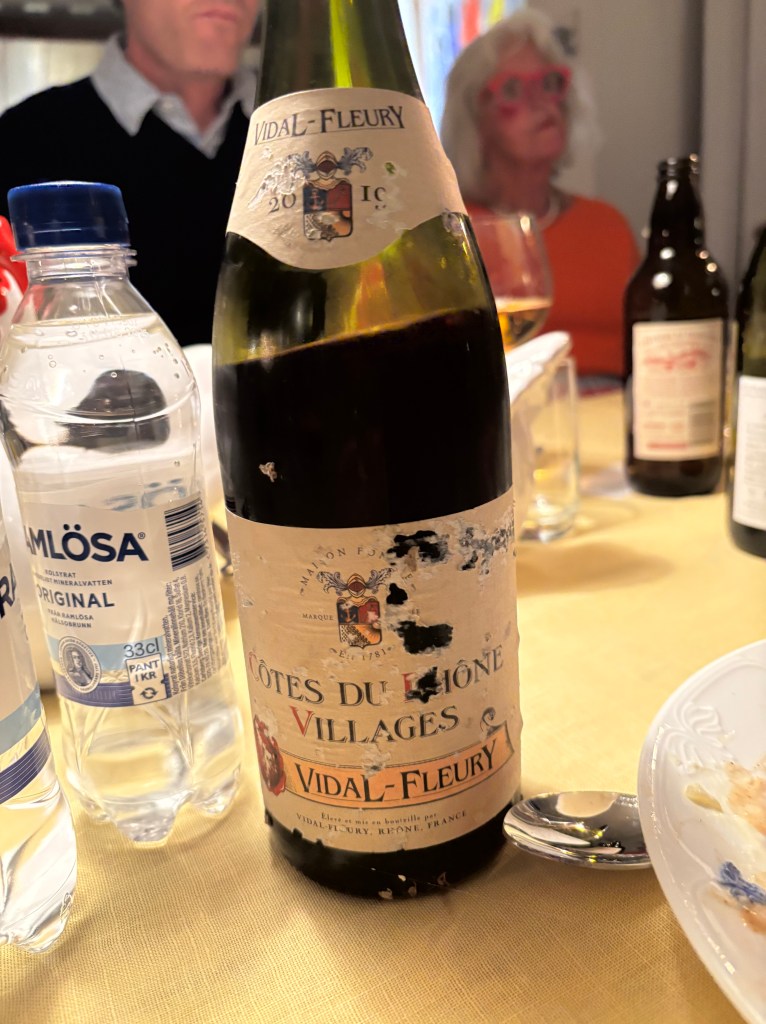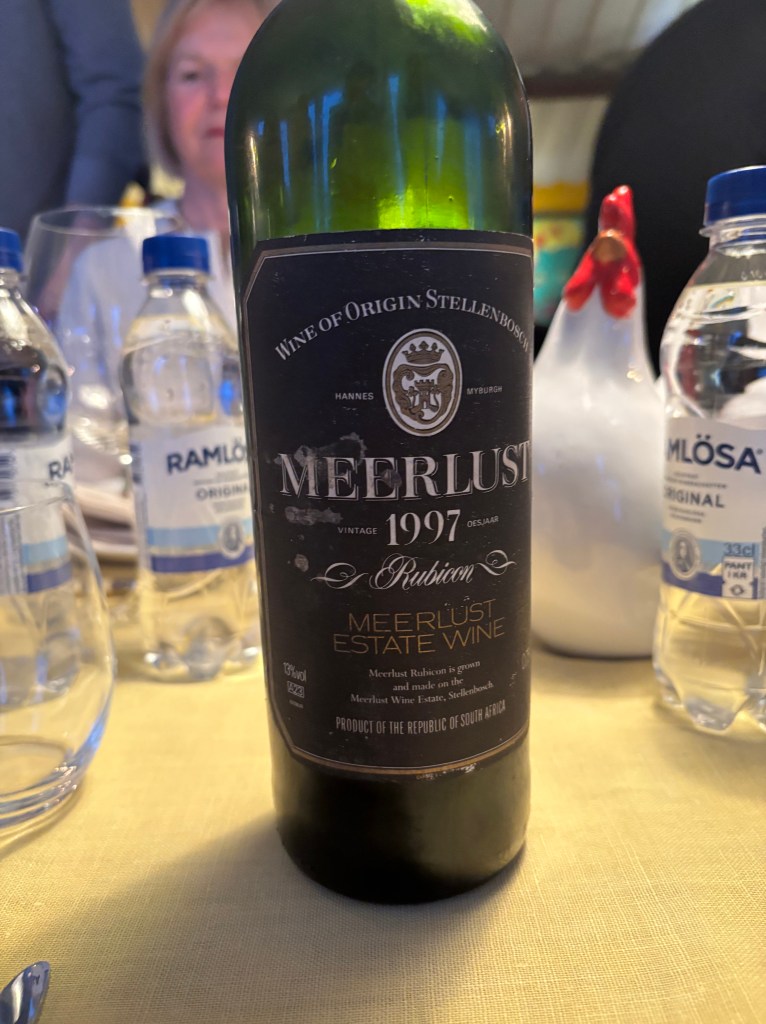 Vi är inte tretton utan elva runt bordet denna påskafton. Min före detta svärmor har samlat oss och bjuder på god mat och viner från hennes mans vinkällare. Det är snudd på ett år sedan han dog. VI skålar för honom med en Stellenbosch från 97.