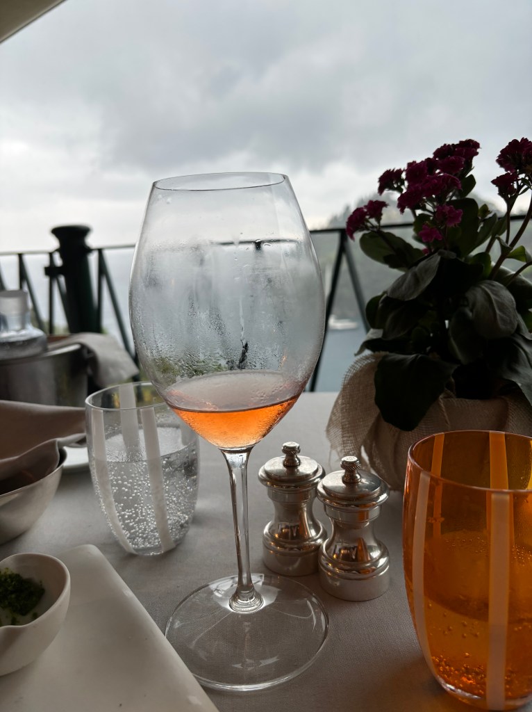 Vi åt middag på La Terrazza på hotel Splendido och där bevittnade vi naturen uppvisa alla sina ansikten. Från solsken till spöregn med efterföljande tät dimma och sedan sakta men säkert tillbaka till solsken igen.