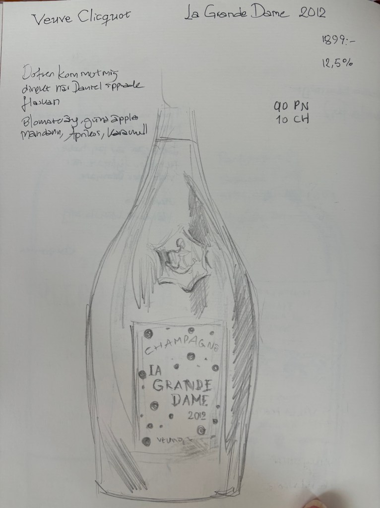 Jag har också druckit två stycken Grande Dame (deras prestige cuvée), varav båda var från 2012 men en var en rosé. Bruten (6 G/L) är gjord på 90% PN och 10% CH och jag har antecknat att doften av en sommaräng och gröna äpplen kom emot mig omedelbart när den öppnades. Även rosén är 90 % PN och 10% CH brut (8) och var floral och fantastisk.