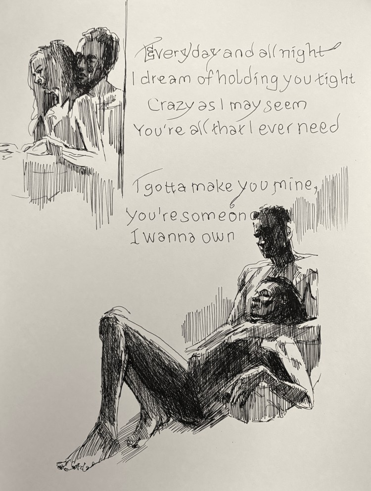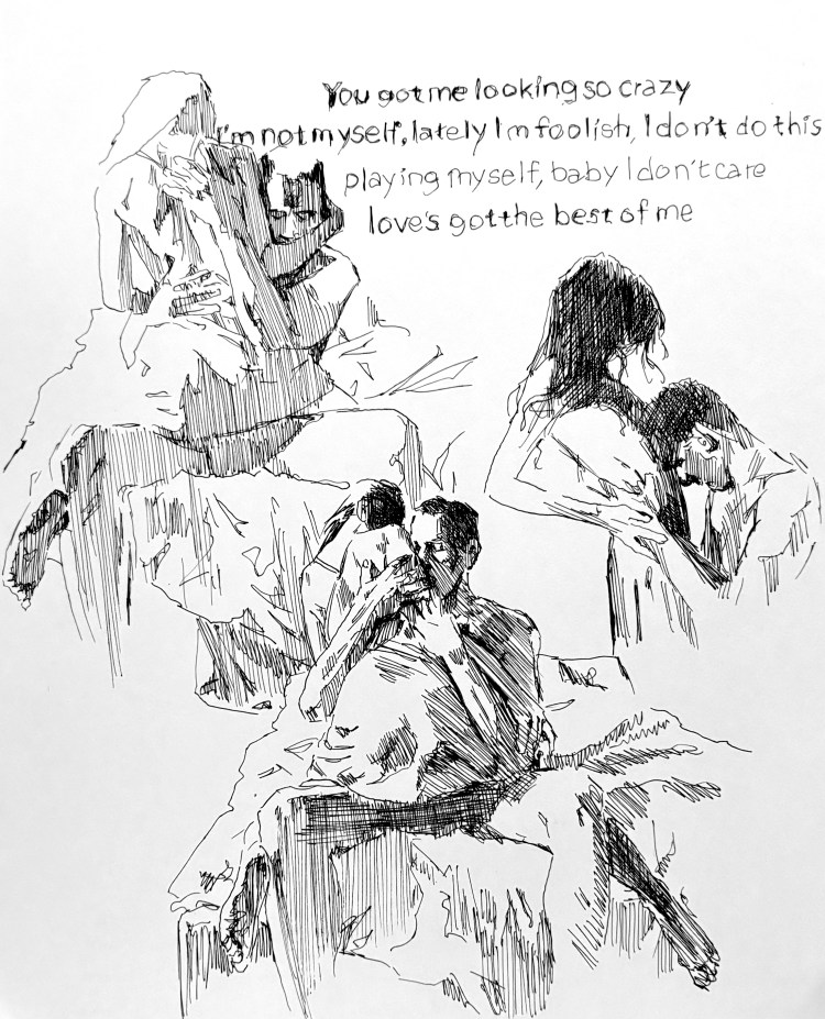 Musik är också en av mina stora inspirationskällor, men jag har alltid känslan av att jag aldrig kan göra musiken rättvisa. Jag kan aldrig fånga den. Musik är ett mysterium för mig. All annan konstform känns som att man kan bemästra om man jobbar tillräckligt hårt, men musik känns bortom räckhåll.