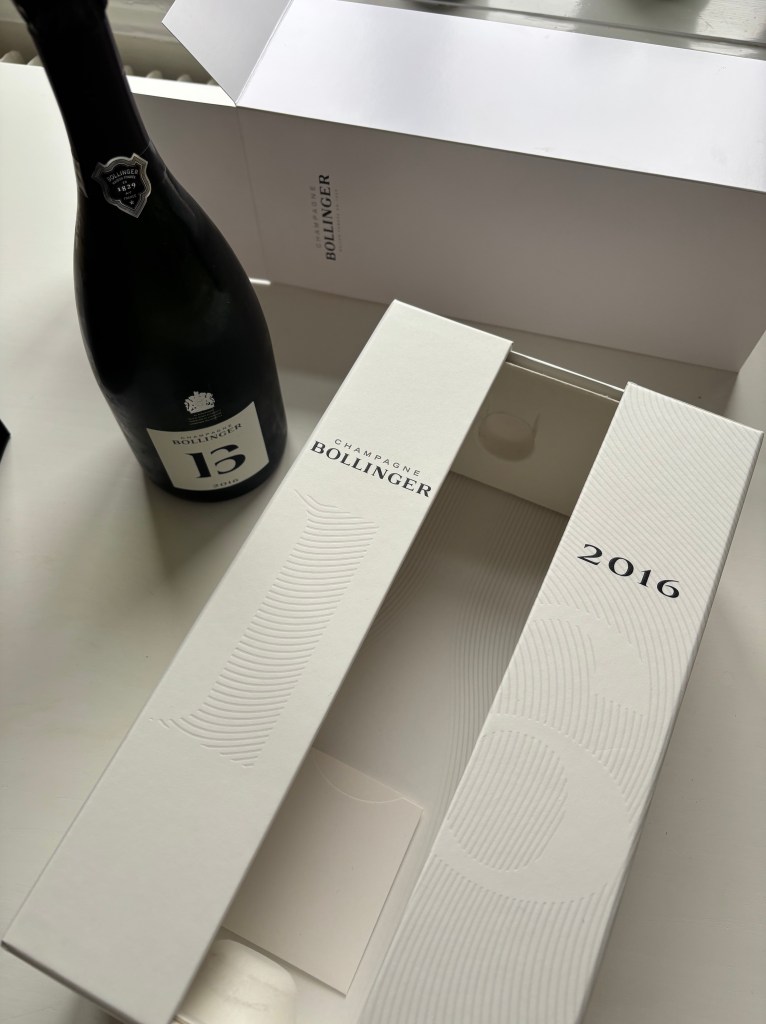 Jag (och säkert de flesta) ser den som ”old money”, stilfull, mörka färger och manlig (även om det förstås är ytterst stereotypiskt). De har en egen flasktyp som är tänkt att se ut som en magnumflaska. Flaskan är bred och ser kraftfull ut, etiketten är stilren och utan skryt. Bollinger är som en drömman helt enkelt 😄