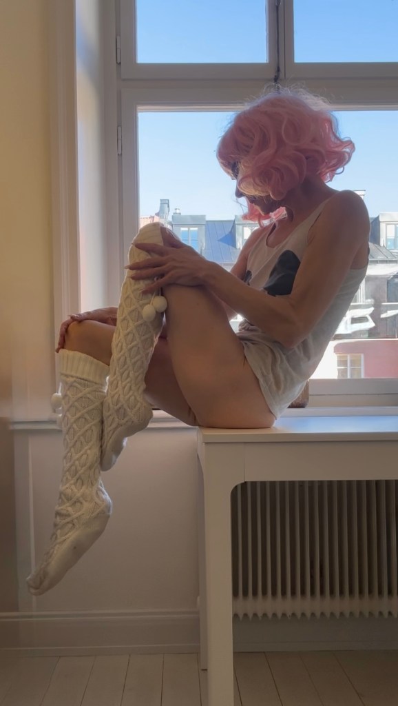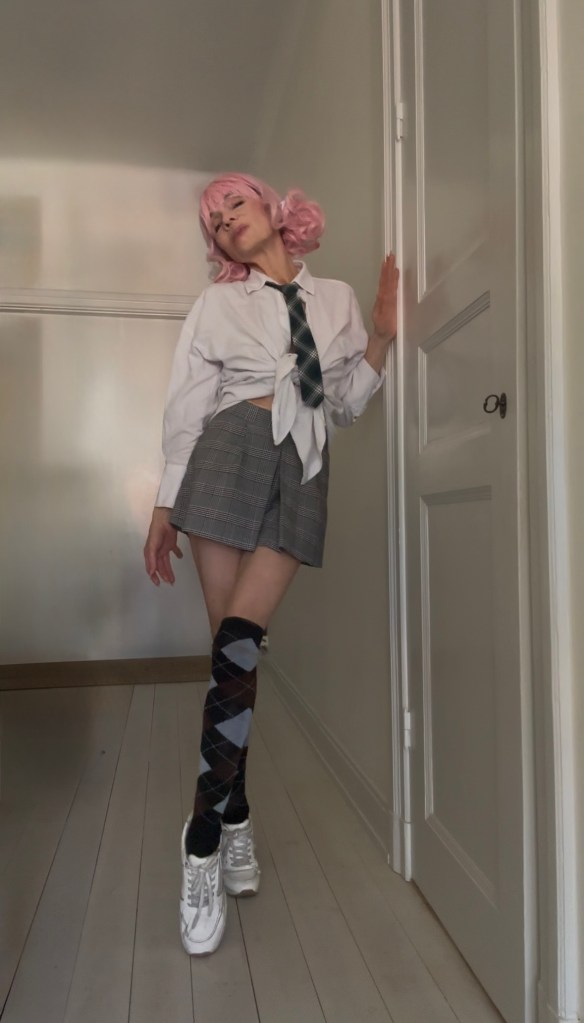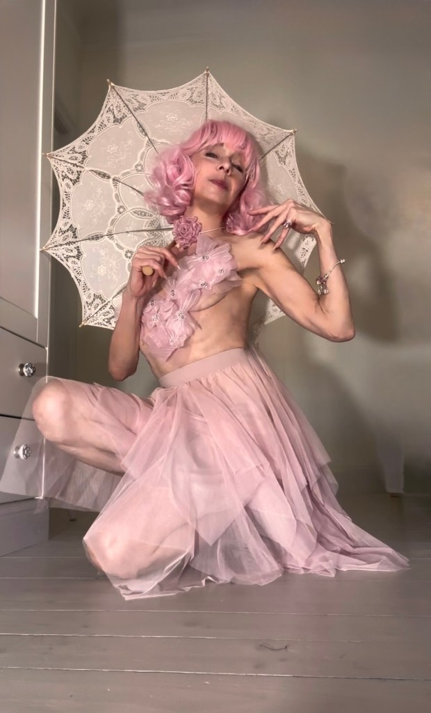 Hon älskar rosa och vitt och hon representeras av en rosa peruk.