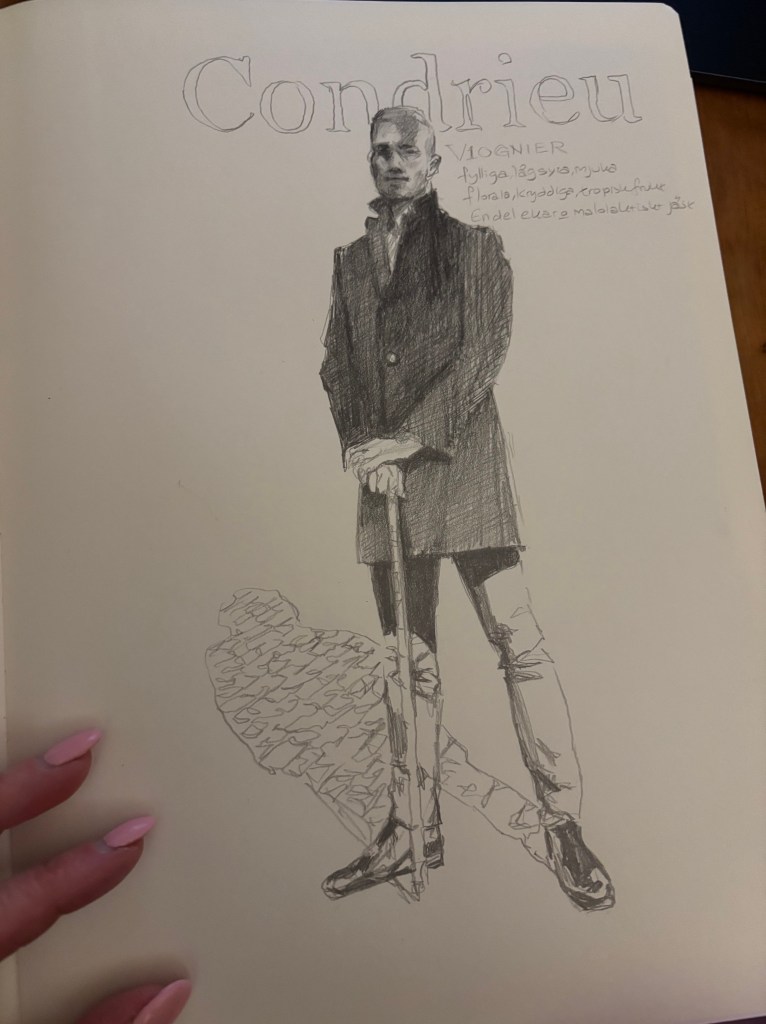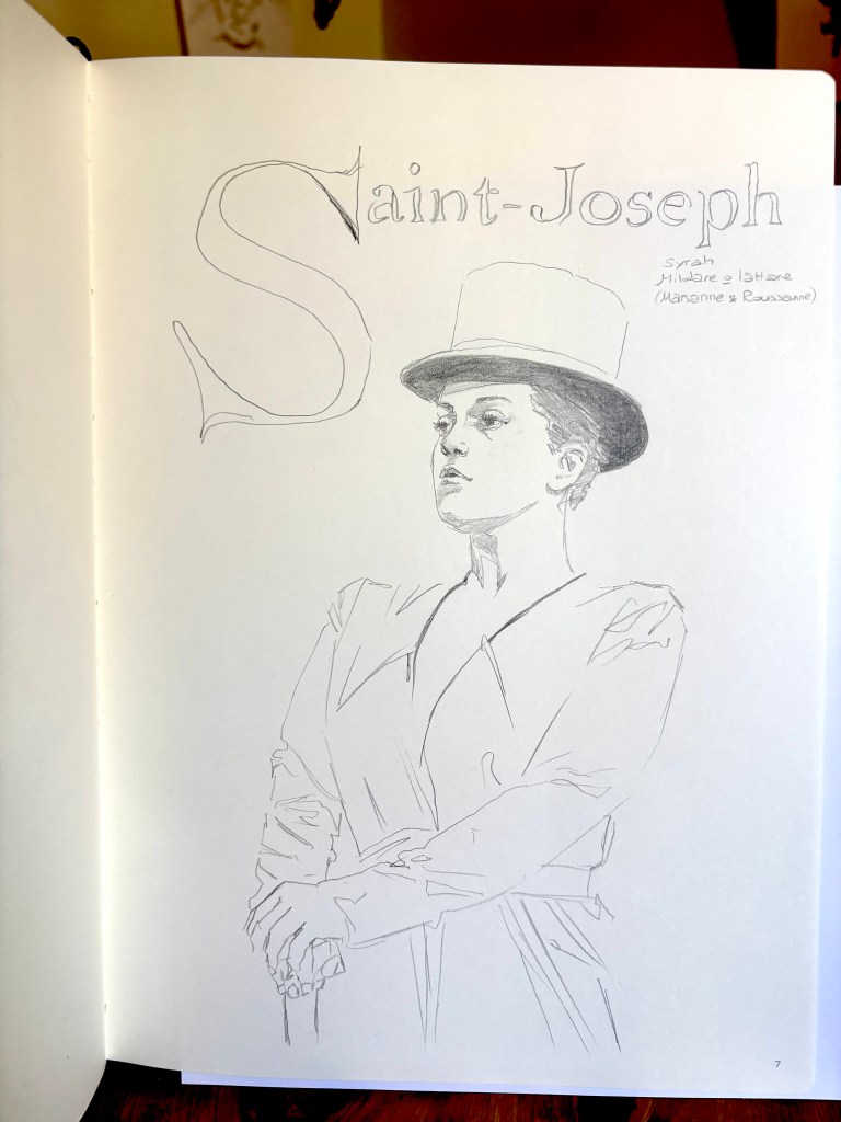 Denna skissbok kommer jag kanske att återvända till – den handlar om olika vindistrikt som jag personifierade. Det var kul 🙂 – jag slutförde distriktet Rhônedalen.