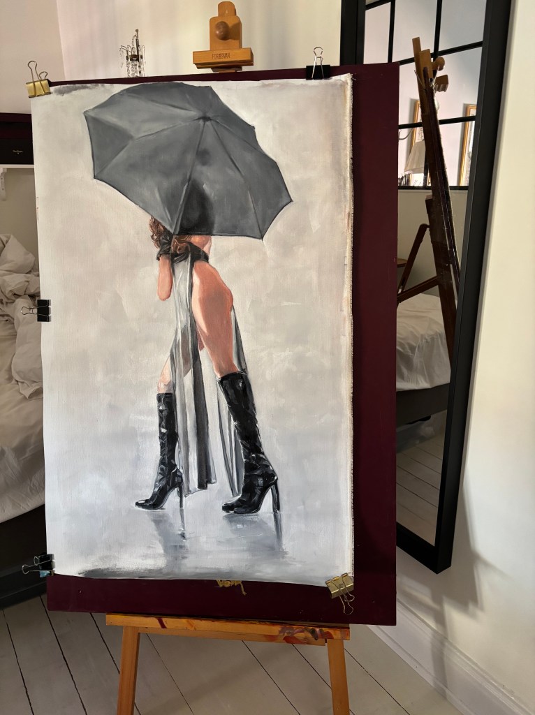 och nu när jag ser på bilderna av målningen ser jag en detalj jag måste rätta till…Men det hinner jag inte med idag…Askungen!!!