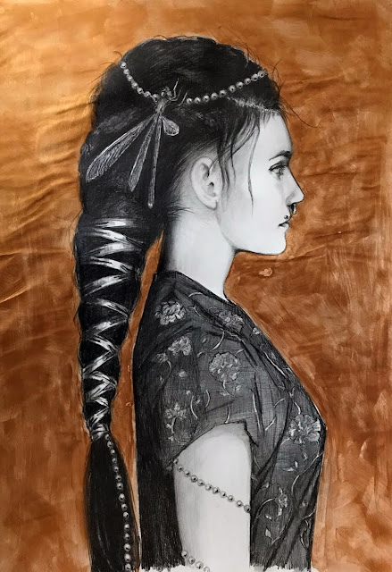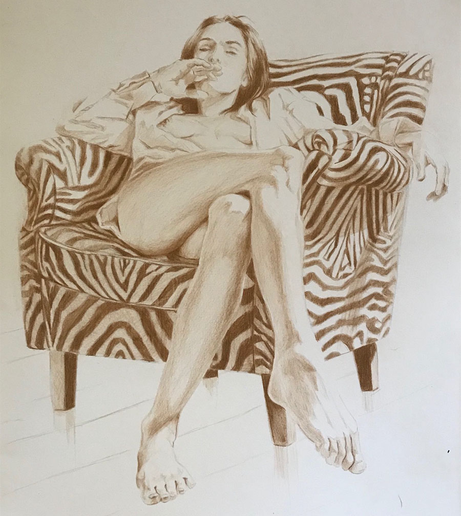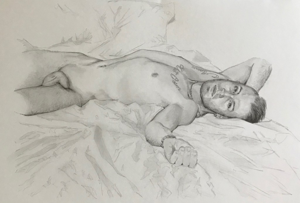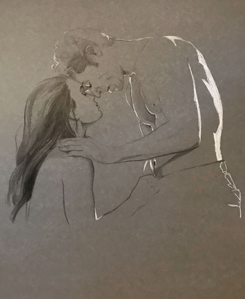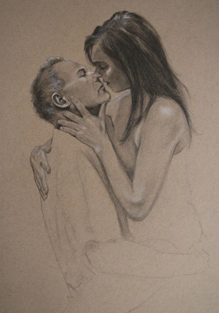 Jag har haft återkommande perioder när jag fullkomligt älskar att teckna på färgat papper. Ofta gråa, bruna eller beigetonade. En dag kanske jag ska våga mer färgglada papper? Tycker du om den stilen finns de fler under fliken ”erotiska teckningar till salu”.