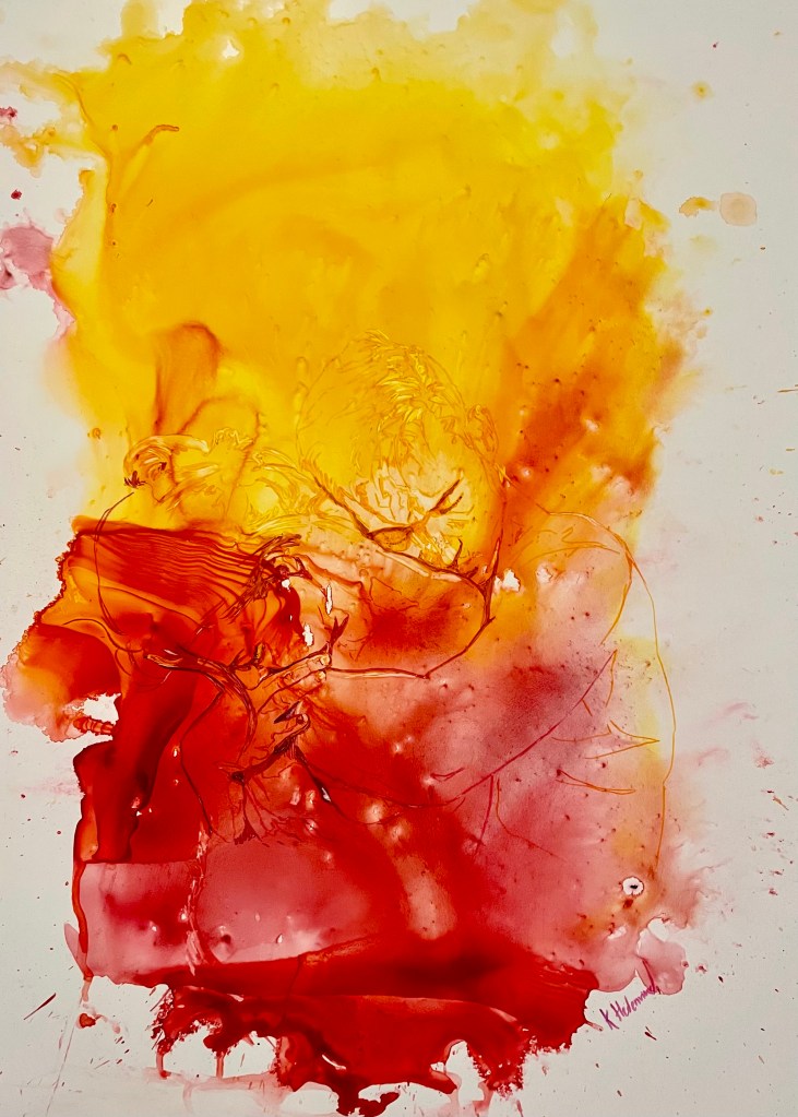 Under en ganska lång period älskade jag att använda akvarell på yupopapper (ett syntetiskt papper) där kunde jag leka med erotiska motiv men som doldes av en till synes abstrakt form. Är du nyfiken kan du läsa mer om det här: https://hedenvindsbilder.com/2021/10/14/yupomalningar/