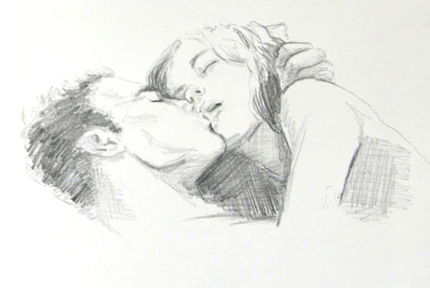 Följande teckningar är alla från en skissbok som jag kallar Histoires d´amour. Det var en tjock skissbok så jag valde att dela den i fyra inlägg. Det passade bra att göra så eftersom skissboken förändrades under tiden jag tecknade i den. Den första delen präglades av enkla teckningar som var tänkta som inspiration för målningar. Du kan hitta dem här: https://hedenvindsbilder.com/2024/06/06/id-kill-a-dragon-for-you/