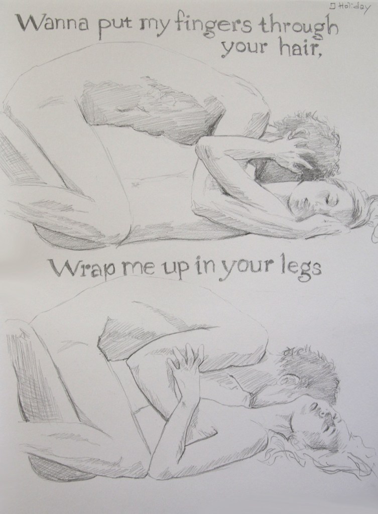 I mitten av skissboken drogs jag djupt in i den, och varje teckning kom att bli betydelsefull för mig. Jag gav varje sida en egen låt. För musik inspirerar mig så mycket. Följ länken så kan du se fler teckningar: https://hedenvindsbilder.com/2024/05/19/histoires-damour/
