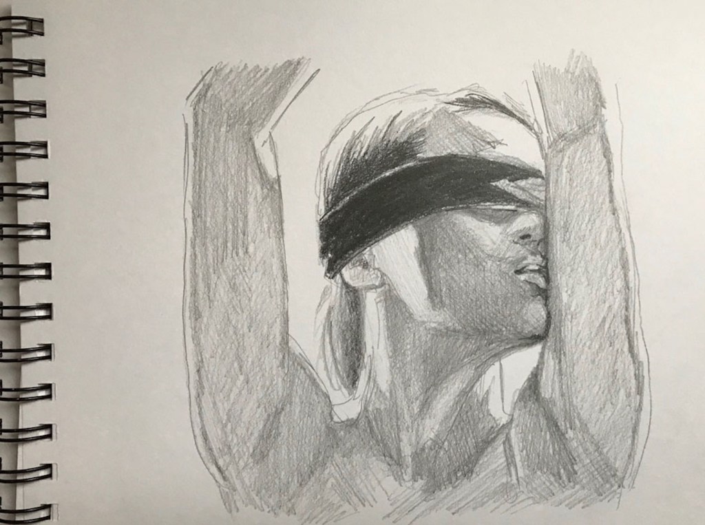 I den sista delen av skissboken kom teckningarna att bli som minihistorier. Jag fortsatte att koppla musik till bilderna och de blev som små berättelser för mig. Du kan se fler exempel om du följer länken: https://hedenvindsbilder.com/2023/02/03/dagdrommar-fantasier/