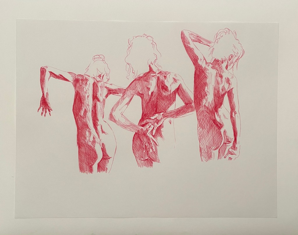 Jag köpte en klassisk BIC-penna, ni vet den med fyra färger. Det är ju egentligen bara en vanlig kulspetspenna, men jag totalt förälskade mig i att använda den. Det blev över tjugo stycken teckningar i rött. Jag kallar serien för B. Ni kommer att förstå varför om ni följer länken. https://hedenvindsbilder.com/2024/03/21/b/