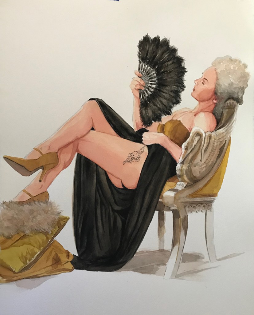 Jag målar främst i olja eller akvarell, och använder endast ljusäkta färger och duk för olja samt syrefritt och åldersbeständigt papper för akvarell.