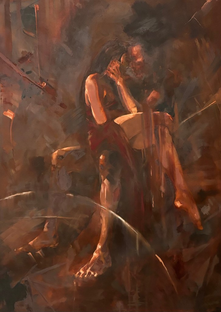 Rost och mörker, men också ljus är inspirationen till dessa tavlor.