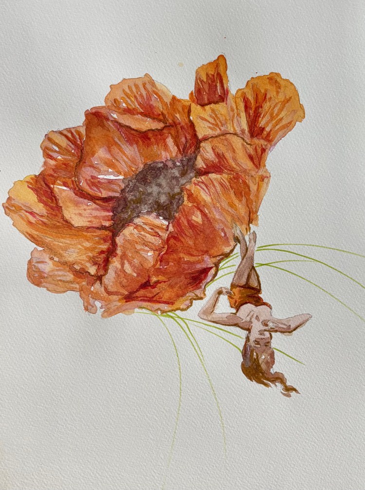Akvarell på akvarellpapper som är syrafritt och åldersbeständigt med råkanter.