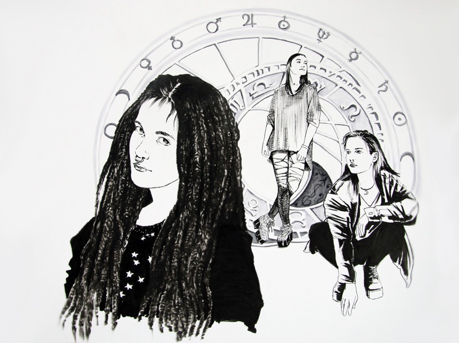 Den som kanske är mest lik mig i många avseenden är Frida, även om jag har många likheter med de andra flickorna också förstås. Frida bodde hos mig två somrar och då passade jag på att måla av henne. Du kan se fler bilder och läsa om det här om du vill: https://hedenvindsbilder.com/2024/08/06/frida/