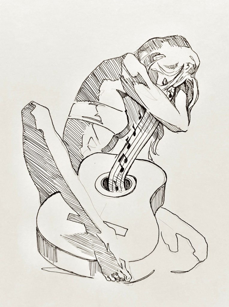 Jag skulle inte påstå att jag är intresserad av musik, det är sällsynt att jag läser om musik och jag kan nästan ingenting om musik. Men jag lyssnar nästan hela min vakna tid på musik. Ibland sover jag med musik. Musik är en av mina starkaste inspirationskällor. Som barn fanns det en tid i mitt liv då jag inte kände till någon annan musik än opera och Abba, eftersom jag inte förstod vad de sjöng hittade jag på egna historier som jag tecknad ner.