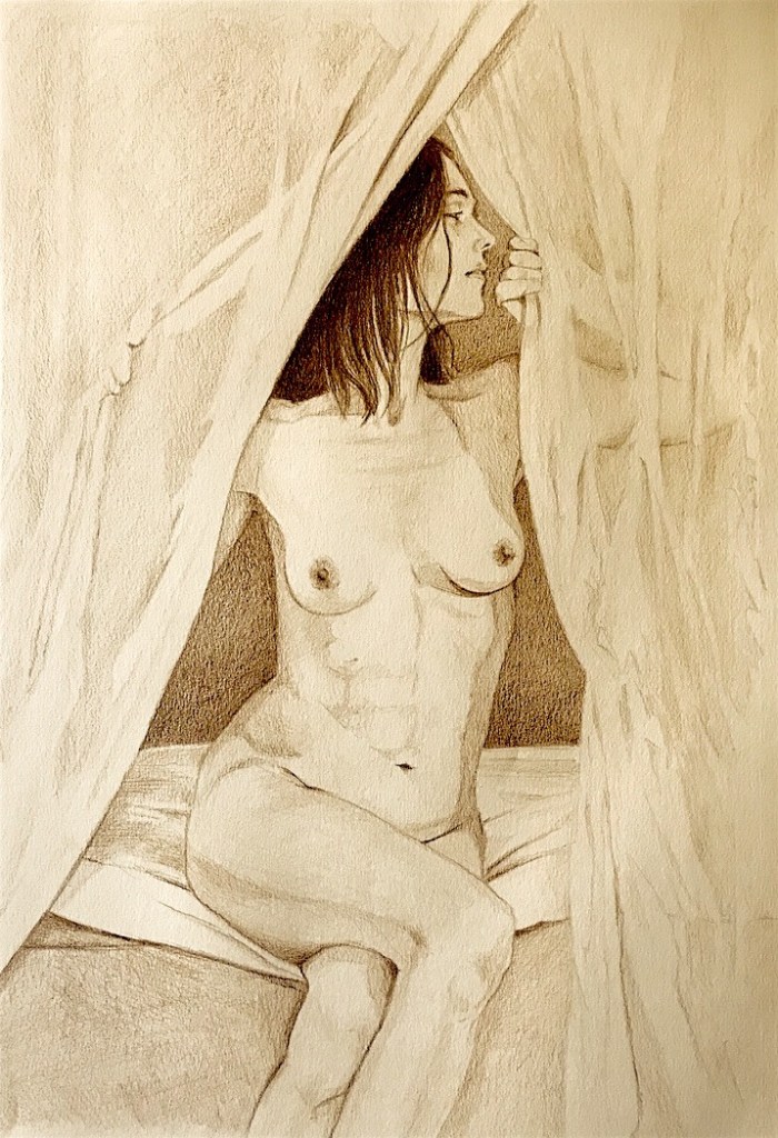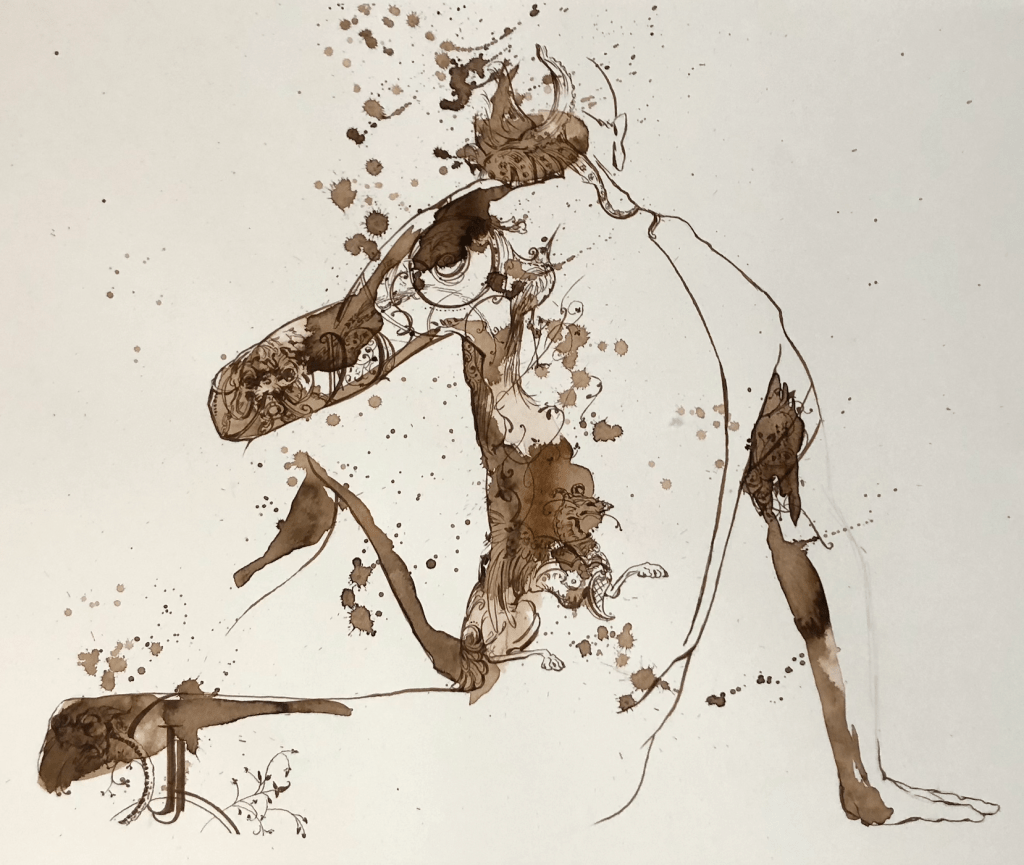 Efter mina temateckningar blev det en naturlig fortsättning till denna serie som jag gjorde i tusch. Jag kallade dem stories. Du kan läsa mer om dem här : https://hedenvindsbilder.com/2022/02/21/stories/